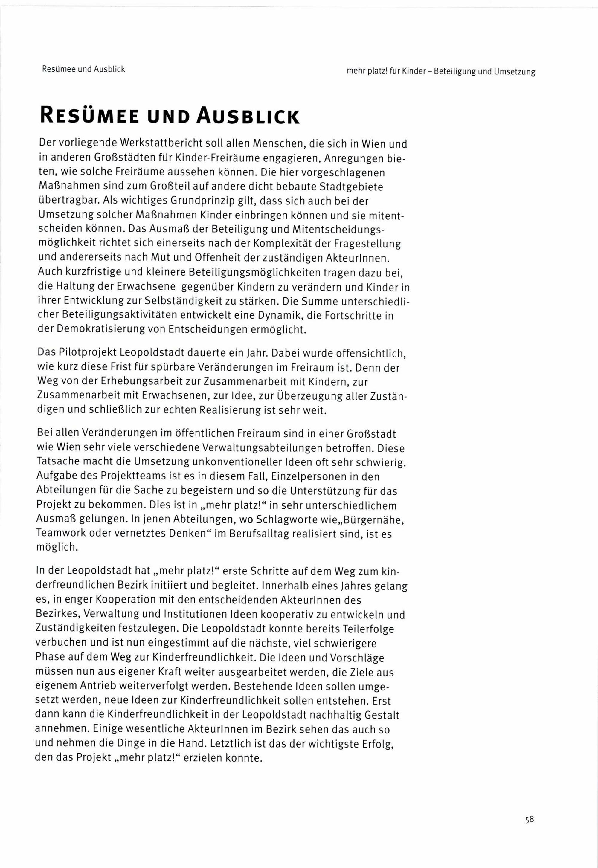 Mehr Platz! für Kinder : Beteiligung und Umsetzung - Pilotprojekt Leopoldstadt ; durchgeführt von PlanSinn im Auftrag der MA 18 - Stadtentwicklung / Herausgeber: Magistratsabteilung 18 - Stadtentwicklung und Stadtplanung ; Inhalt, Konzeption und Redaktion: Hanna Posch [und 1 weitere]