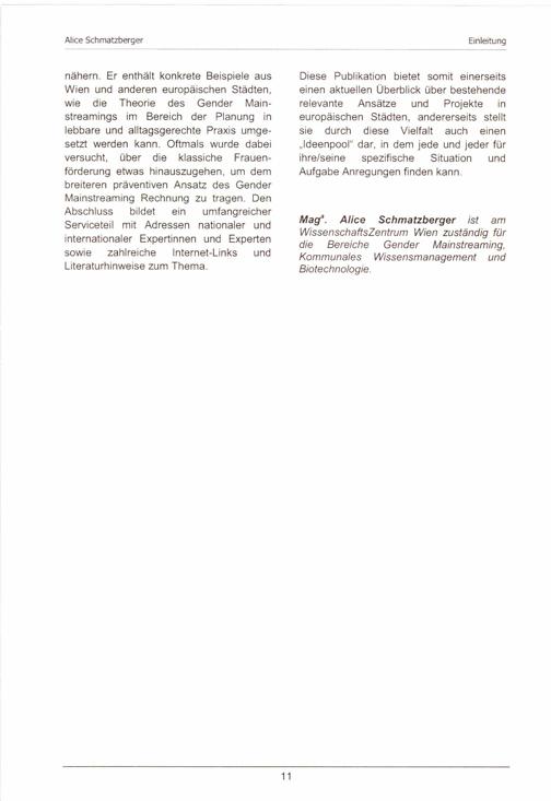 Gender Mainstreaming in der Stadtplanung : Darstellung aktueller Gender-Mainstreaming-Projekte in Wien und in anderen europäischen Städten im Bereich der Stadtplanung / Herausgeber; Magistratsabteilung 18 - Stadtentwicklung und Stadtplanung ; Für den Inhalt verantwortlich ; Shams Asadi