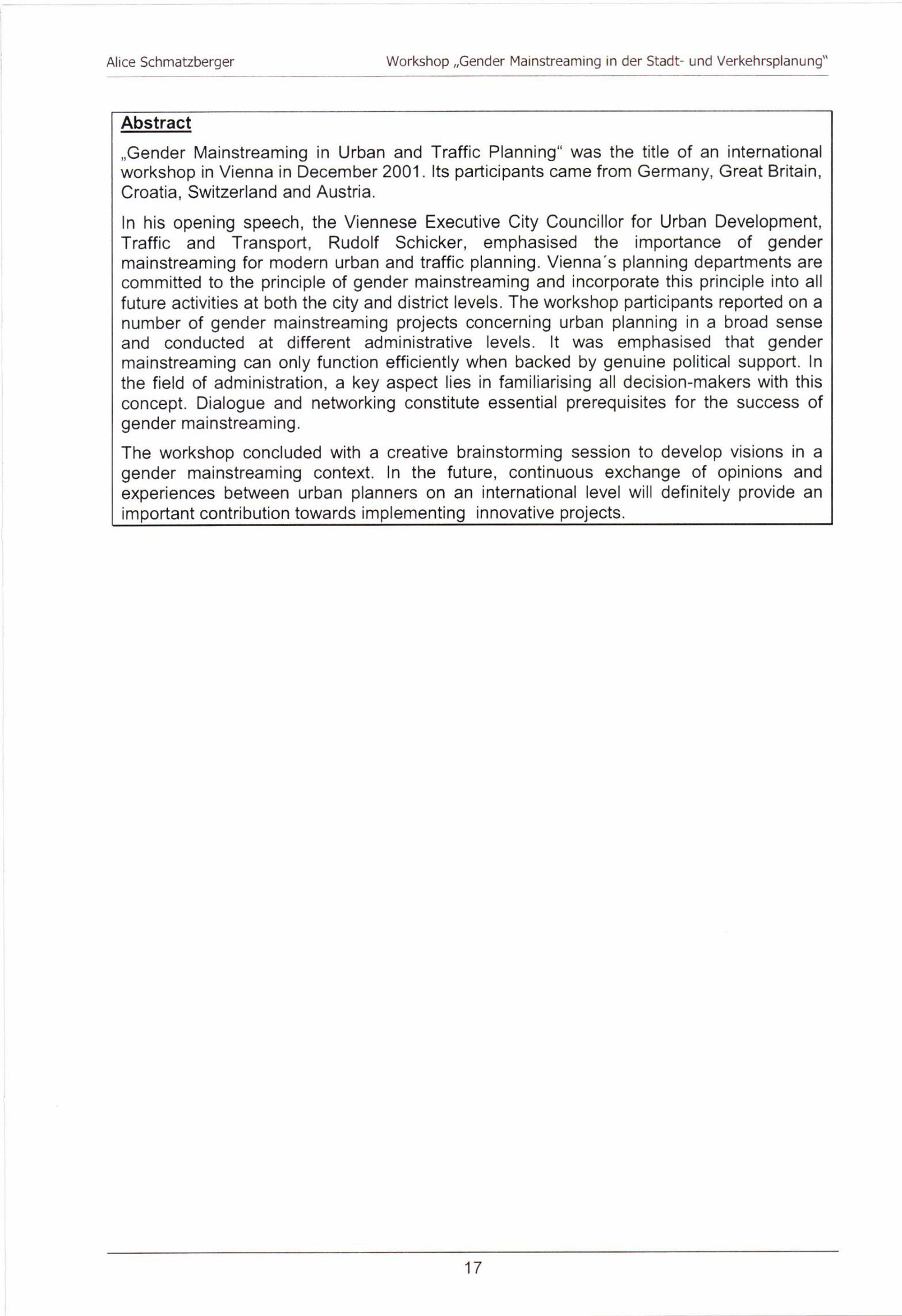 Gender Mainstreaming in der Stadtplanung : Darstellung aktueller Gender-Mainstreaming-Projekte in Wien und in anderen europäischen Städten im Bereich der Stadtplanung / Herausgeber; Magistratsabteilung 18 - Stadtentwicklung und Stadtplanung ; Für den Inhalt verantwortlich ; Shams Asadi