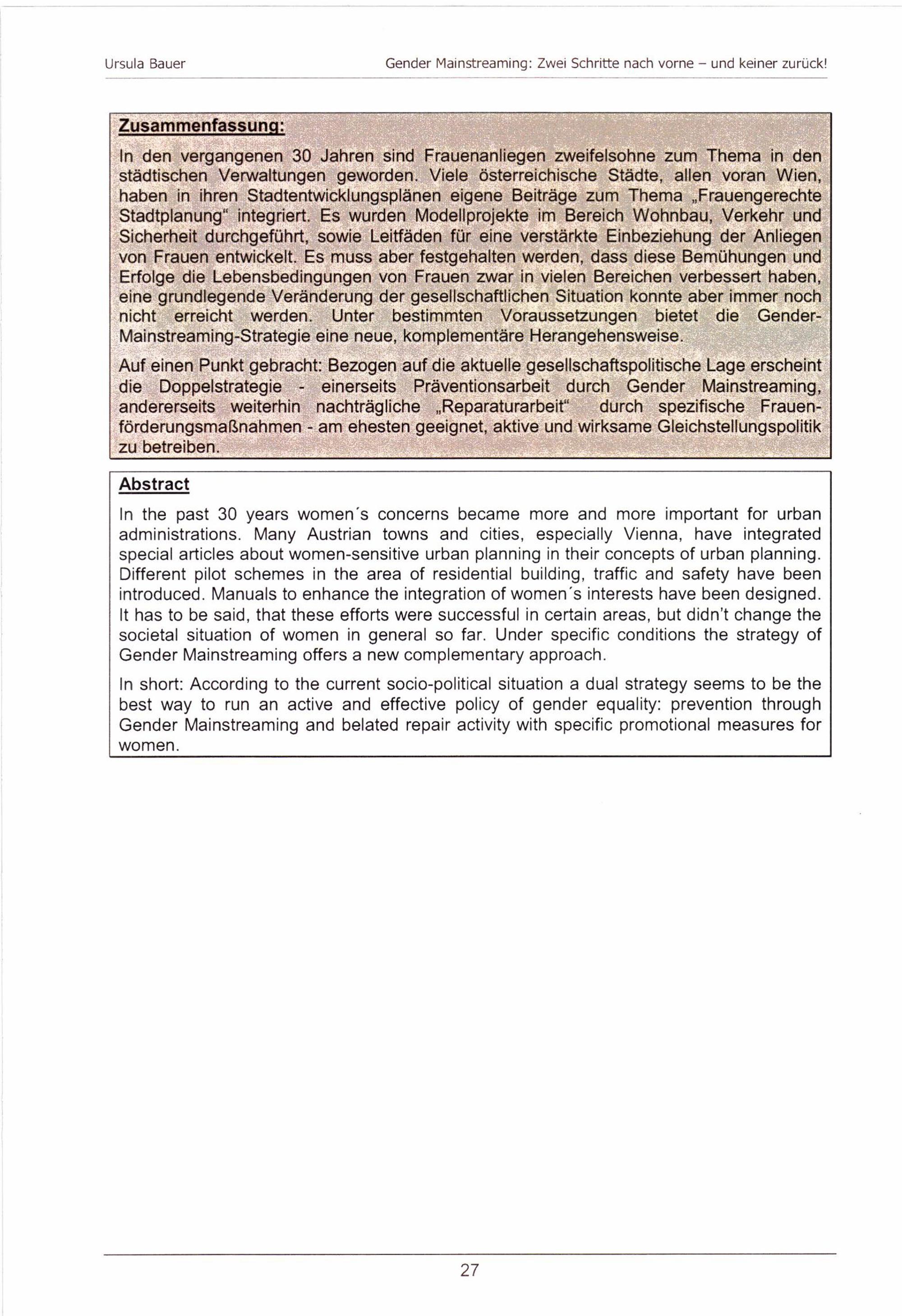 Gender Mainstreaming in der Stadtplanung : Darstellung aktueller Gender-Mainstreaming-Projekte in Wien und in anderen europäischen Städten im Bereich der Stadtplanung / Herausgeber; Magistratsabteilung 18 - Stadtentwicklung und Stadtplanung ; Für den Inhalt verantwortlich ; Shams Asadi