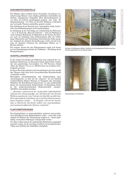 Wiener Flaktürme : Untersuchung zur Klärung der Nutzungsmöglichkeiten im Auftrag der Magistratsabteilung 18 ; gekürzte Zusammenfassung der Arbeitsergebnisse / Herausgeber: Magistratsabteilung 18 - Stadtentwicklung und Stadtplanung ; Inhalt, Konzeption und Redaktion: Abp, Architekturbüro Bernstein Pieler. Erich Pieler