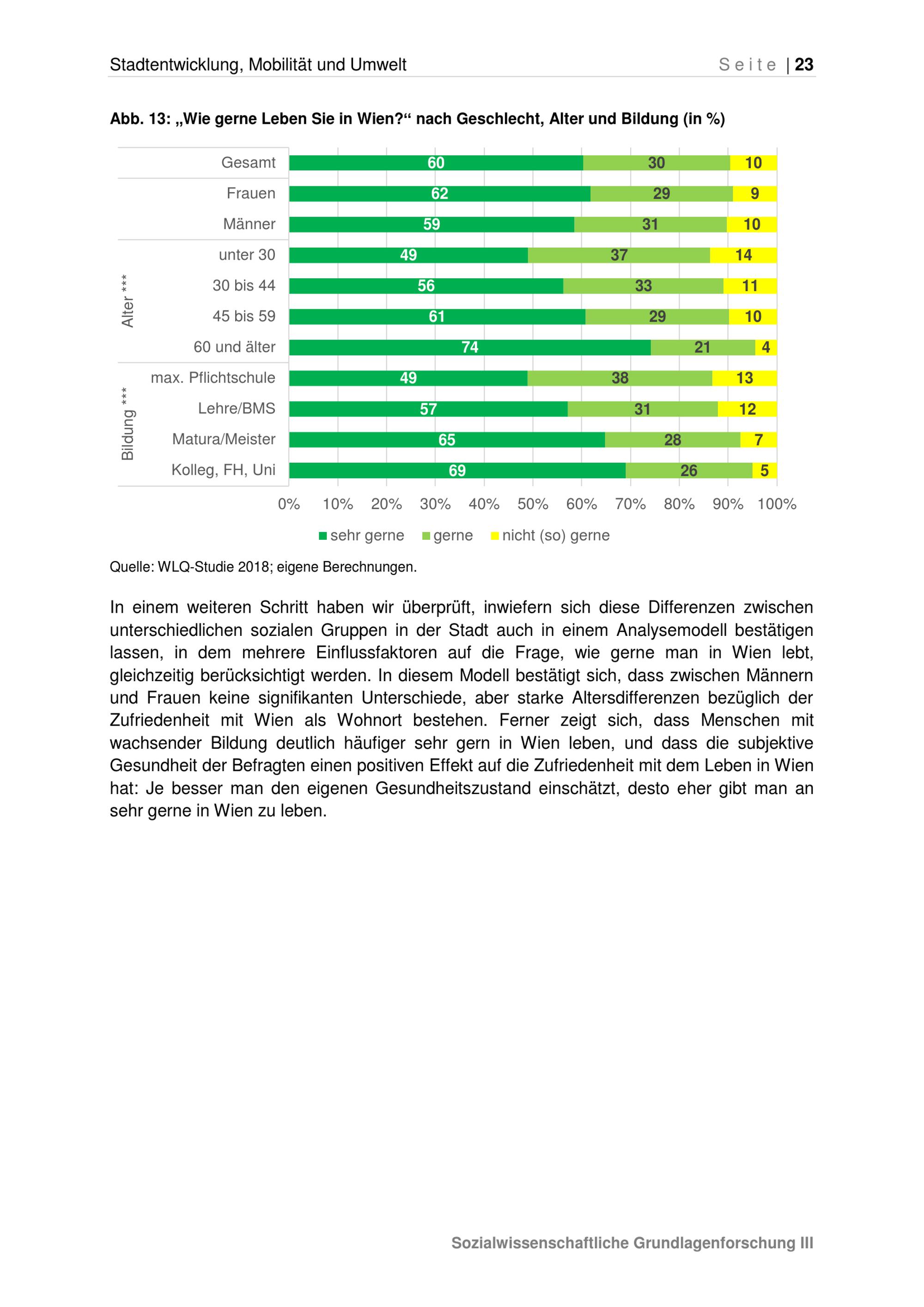 Lebensqualität in einer wachsenden Stadt : Bericht über erste Ergebnisse / Kooperationspartner: Stadt Wien (vertreten durch die Magistratsabteilung 18), Universität Wien (vertreten durch das Institut für Soziologie), Datenerhebung (im Auftrag der Universität Wien): Institut für Empirische Sozialforschung