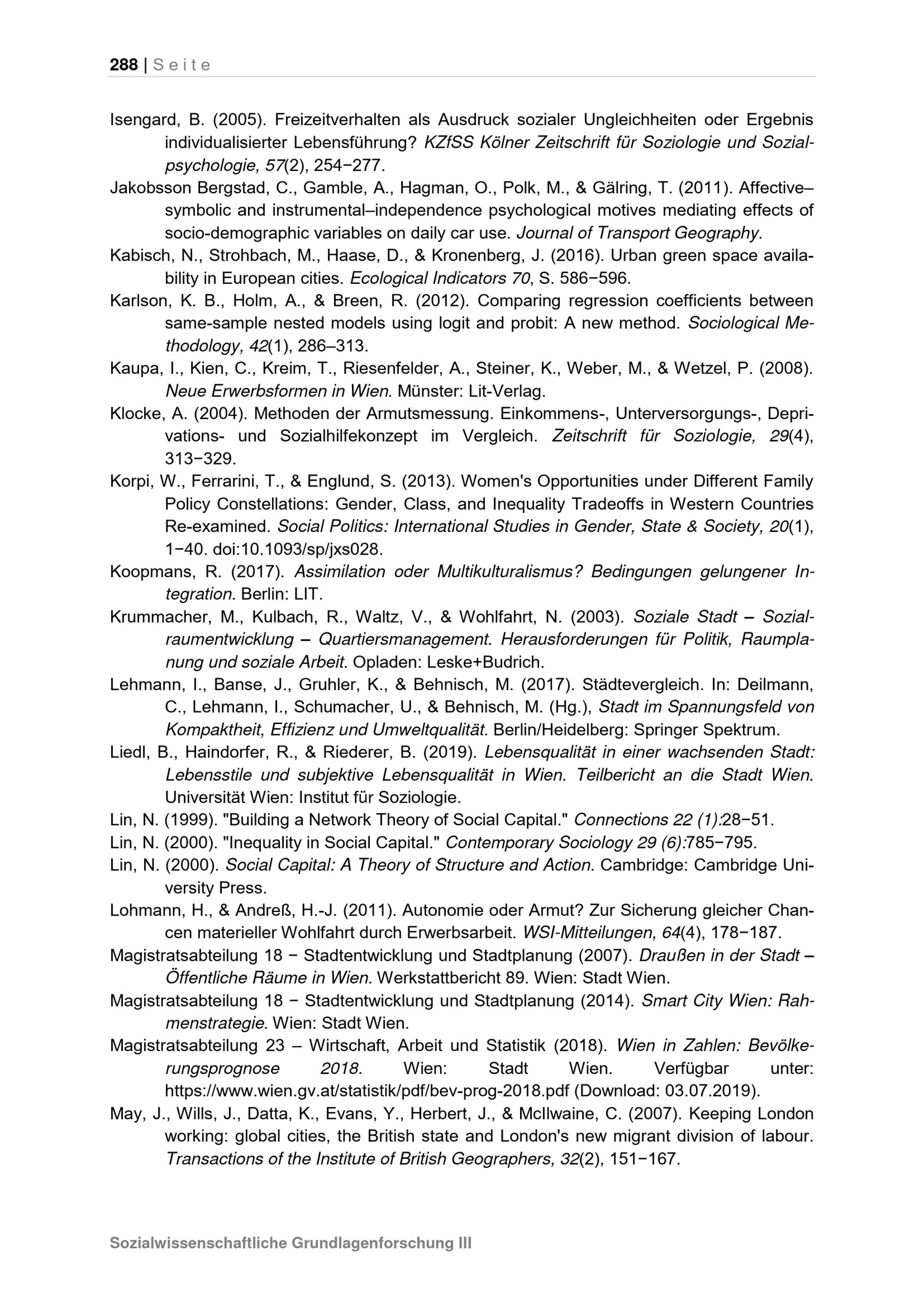Lebensqualität in einer wachsenden Stadt : Endbericht / Kooperationspartner: Stadt Wien (vertreten durch die Magistratsabteilung 18), Universität Wien (vertreten durch das Institut für Soziologie), Datenerhebung (im Auftrag der Universität Wien): Institut für Empirische Sozialforschung