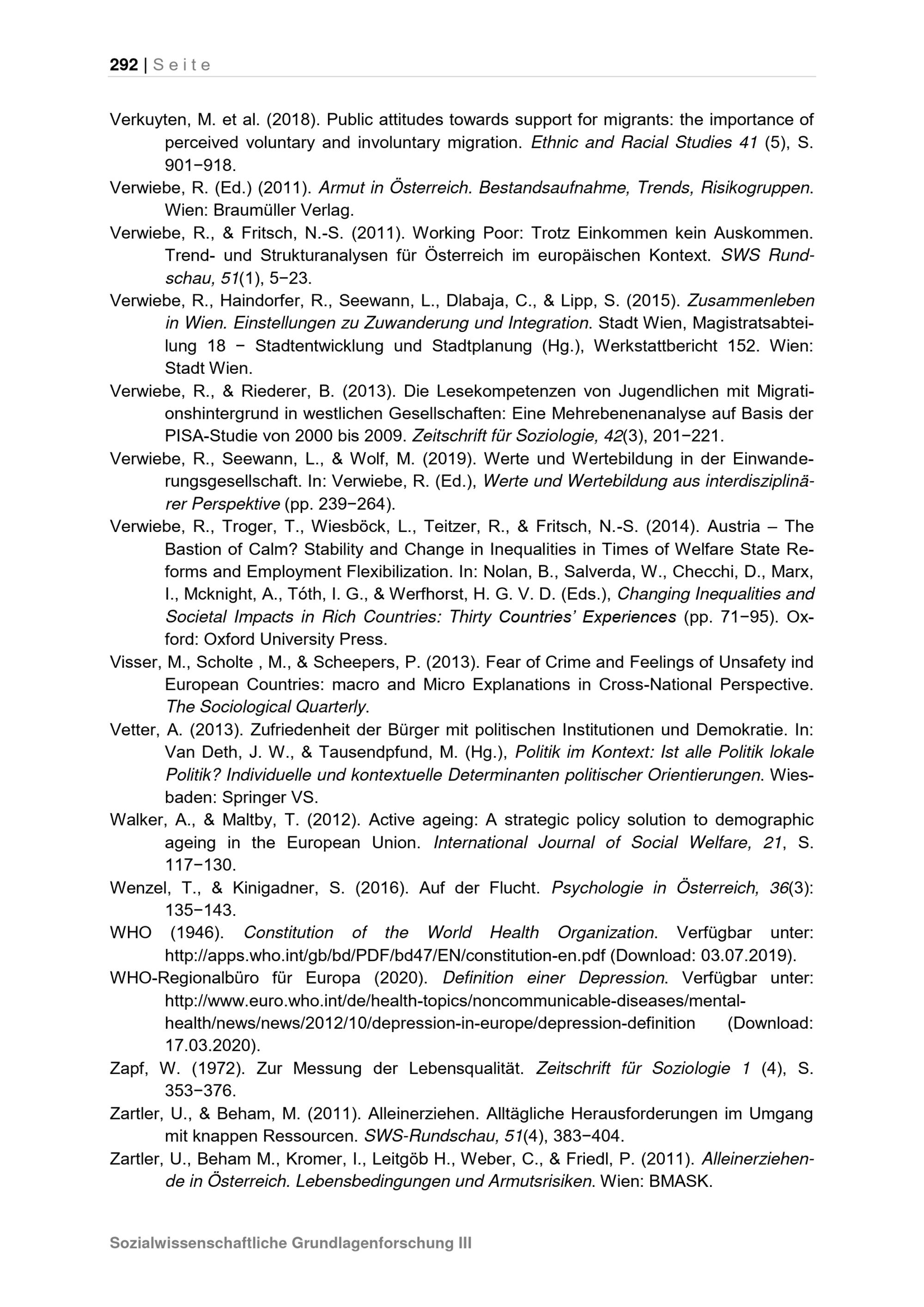 Lebensqualität in einer wachsenden Stadt : Endbericht / Kooperationspartner: Stadt Wien (vertreten durch die Magistratsabteilung 18), Universität Wien (vertreten durch das Institut für Soziologie), Datenerhebung (im Auftrag der Universität Wien): Institut für Empirische Sozialforschung