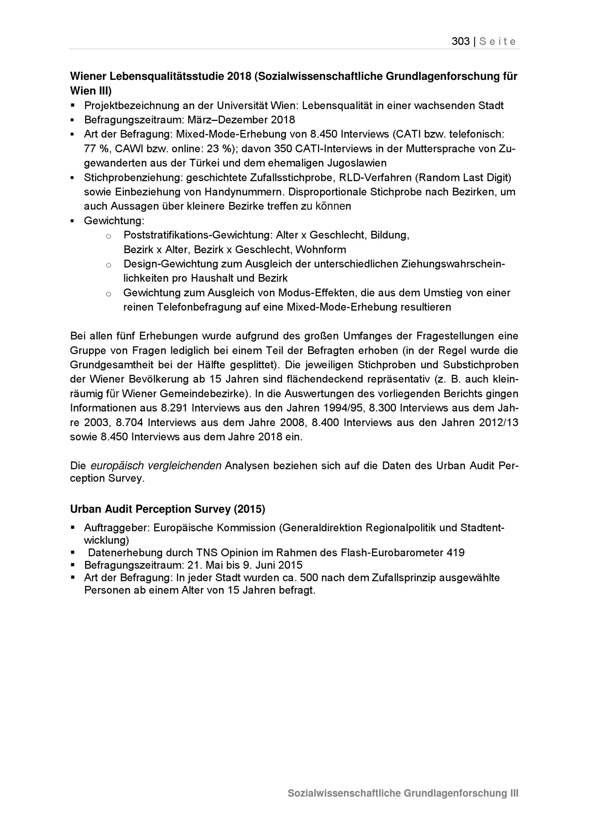 Lebensqualität in einer wachsenden Stadt : Endbericht / Kooperationspartner: Stadt Wien (vertreten durch die Magistratsabteilung 18), Universität Wien (vertreten durch das Institut für Soziologie), Datenerhebung (im Auftrag der Universität Wien): Institut für Empirische Sozialforschung