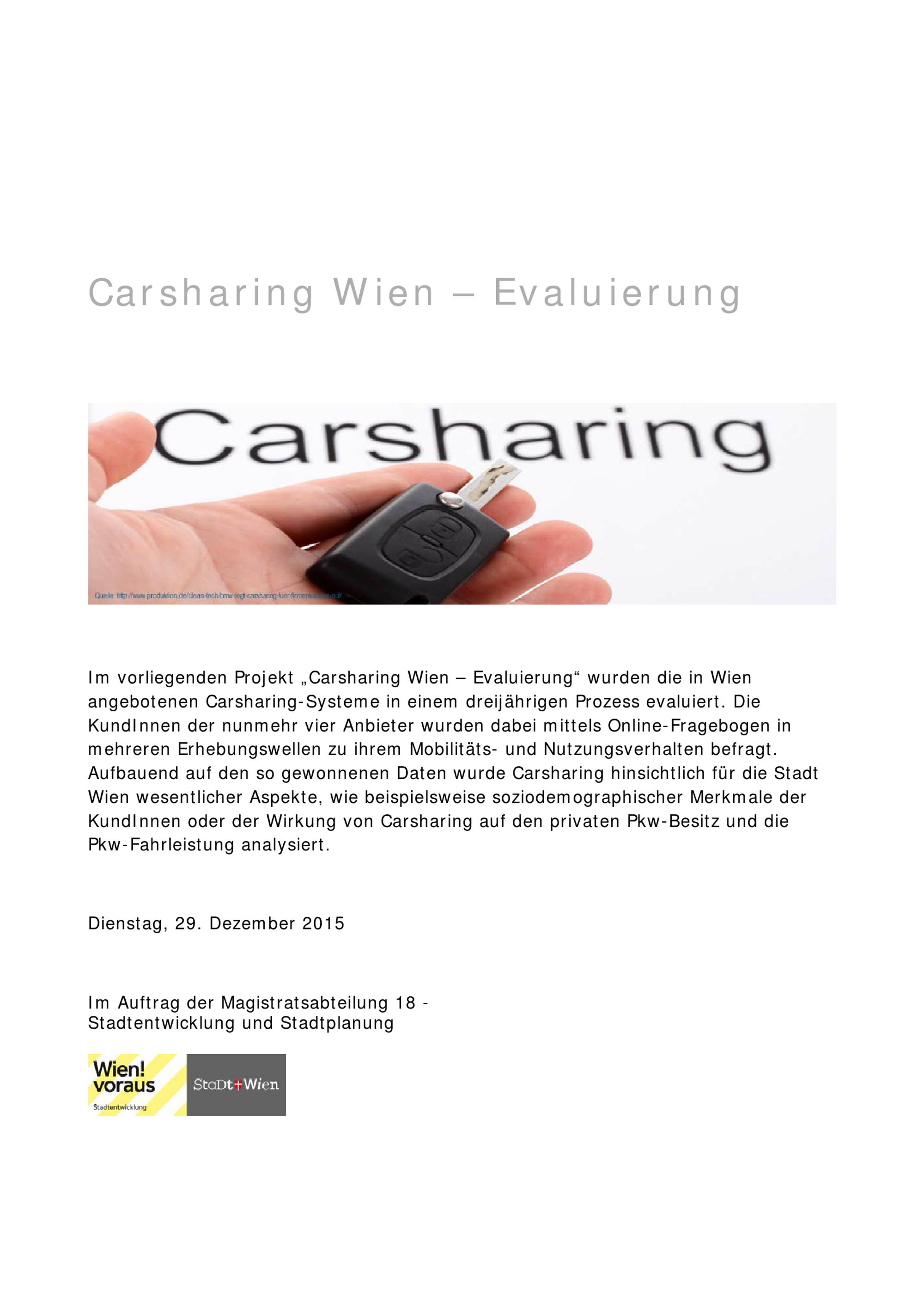 Carsharing Wien : Evaluierung / im Auftrag der Magistratsabteilung 18 ­Stadtentwicklung und Stadtplanung ; Auftragnehmer: HERRY Consult GmbH