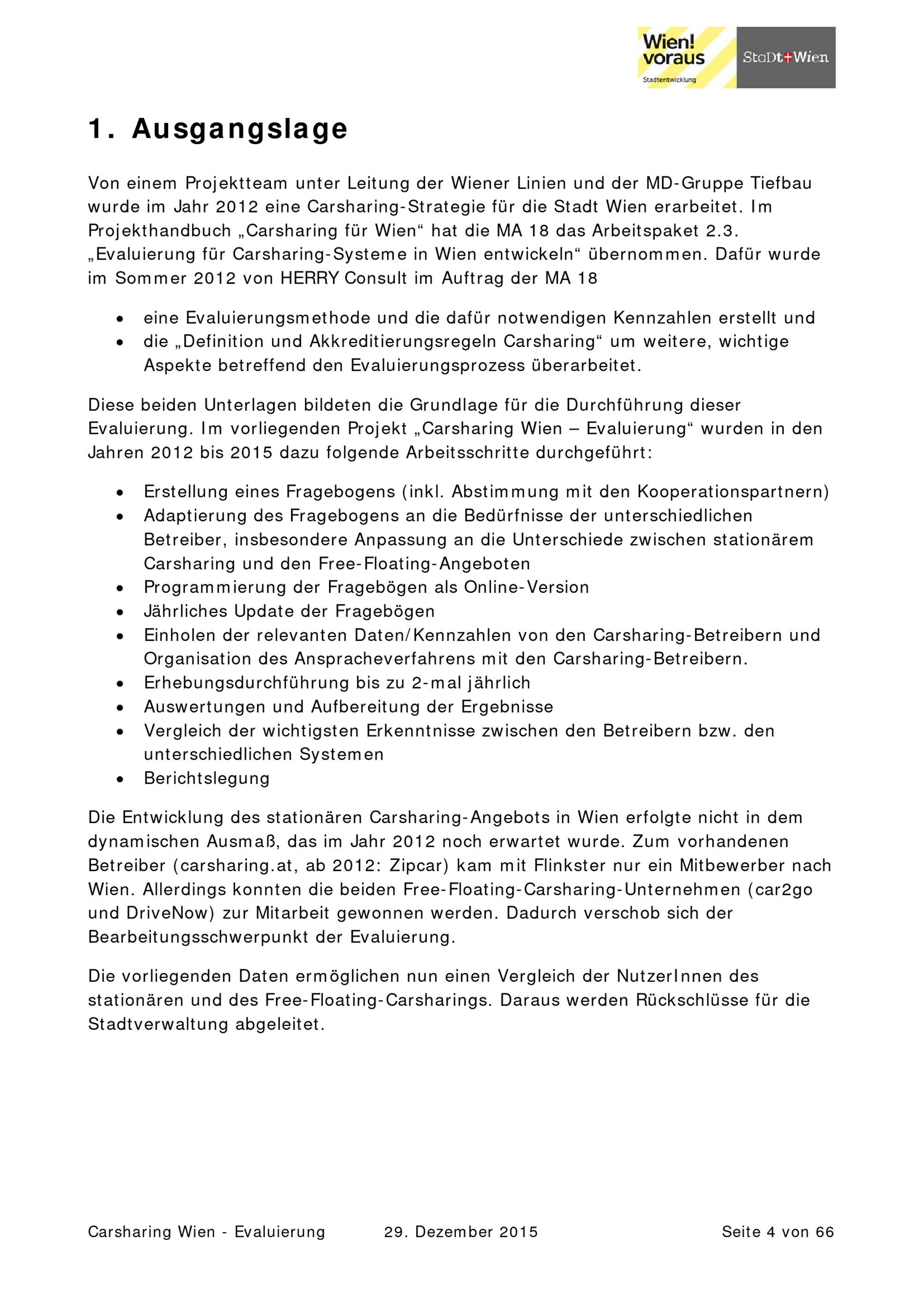 Carsharing Wien : Evaluierung / im Auftrag der Magistratsabteilung 18 Stadtentwicklung und Stadtplanung ; Auftragnehmer: HERRY Consult GmbH