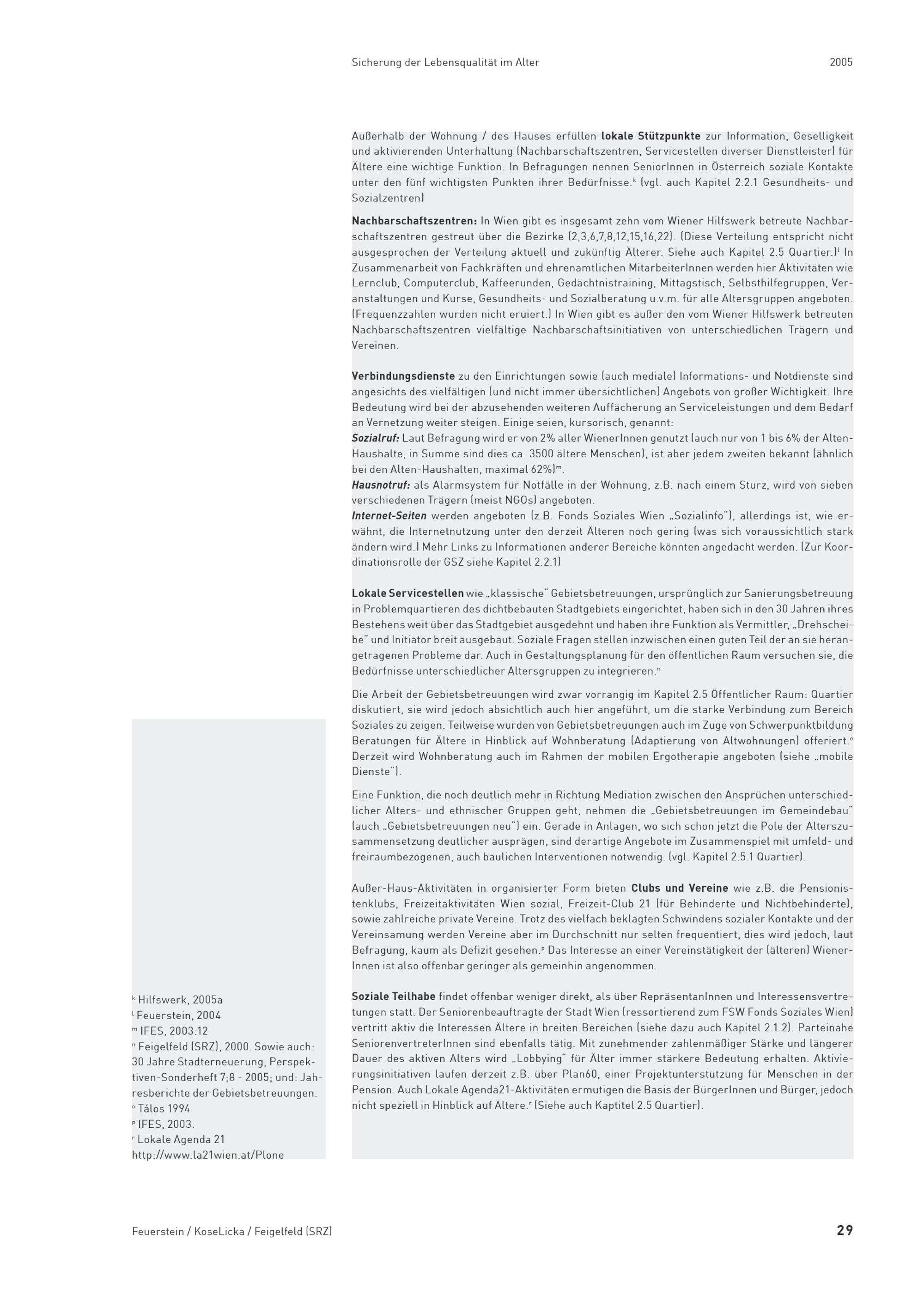 Sicherung der Lebensqualität im Alter : Stadtentwicklung und Stadtplanung / Auftraggeber: MA 18 Referat Landschaftsplanung und Projektmanagement in Zusammenarbeit mit dem Referat Stadtforschung und Trendanalysen und die Bereichsleitung für Sozial- und Gesundheitsplanung sowie Finanzmanagement ; Auftragnehmer: Arge Feuerstein - KoseLicka - SRZ