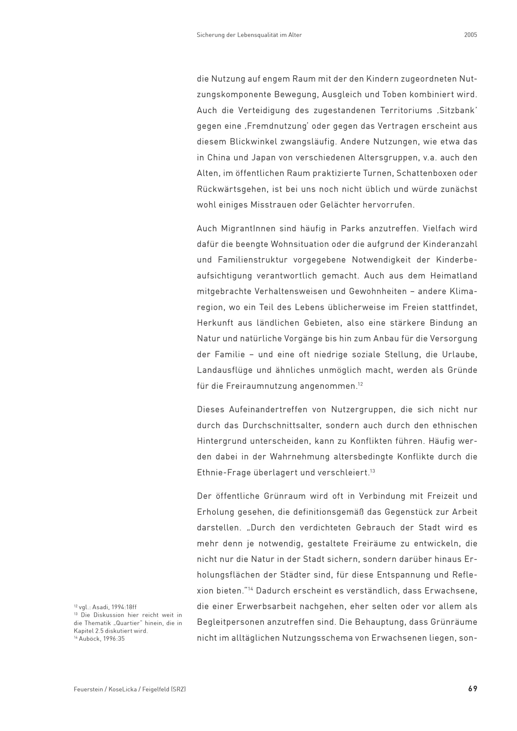 Sicherung der Lebensqualität im Alter : Stadtentwicklung und Stadtplanung / Auftraggeber: MA 18 Referat Landschaftsplanung und Projektmanagement in Zusammenarbeit mit dem Referat Stadtforschung und Trendanalysen und die Bereichsleitung für Sozial- und Gesundheitsplanung sowie Finanzmanagement ; Auftragnehmer: Arge Feuerstein - KoseLicka - SRZ