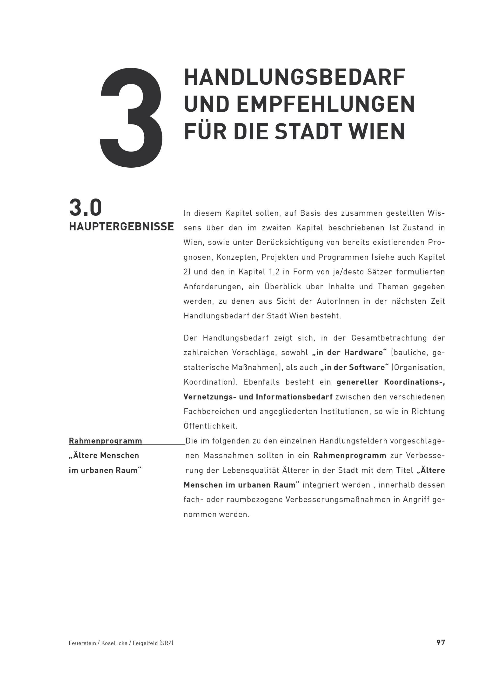 Sicherung der Lebensqualität im Alter : Stadtentwicklung und Stadtplanung / Auftraggeber: MA 18 Referat Landschaftsplanung und Projektmanagement in Zusammenarbeit mit dem Referat Stadtforschung und Trendanalysen und die Bereichsleitung für Sozial- und Gesundheitsplanung sowie Finanzmanagement ; Auftragnehmer: Arge Feuerstein - KoseLicka - SRZ