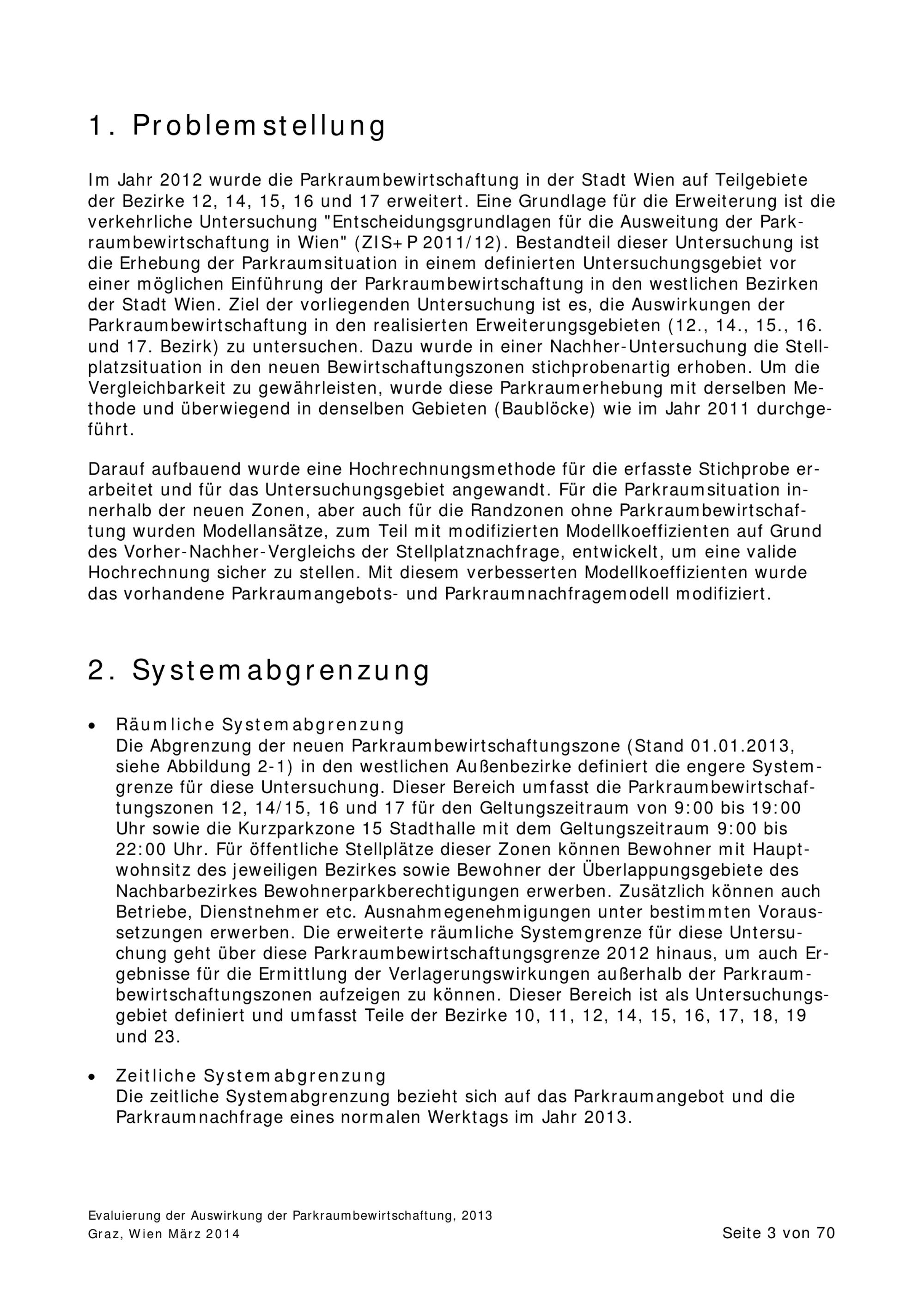 Ausweitung der Parkraumbewirtschaftung in Wien : Evaluierung der Auswirkung der Ausweitung der Parkraumbewirtschaftung auf die Parkraumnachfrage / Magistratsabteilung 18 - Stadtentwicklung und Stadtplanung