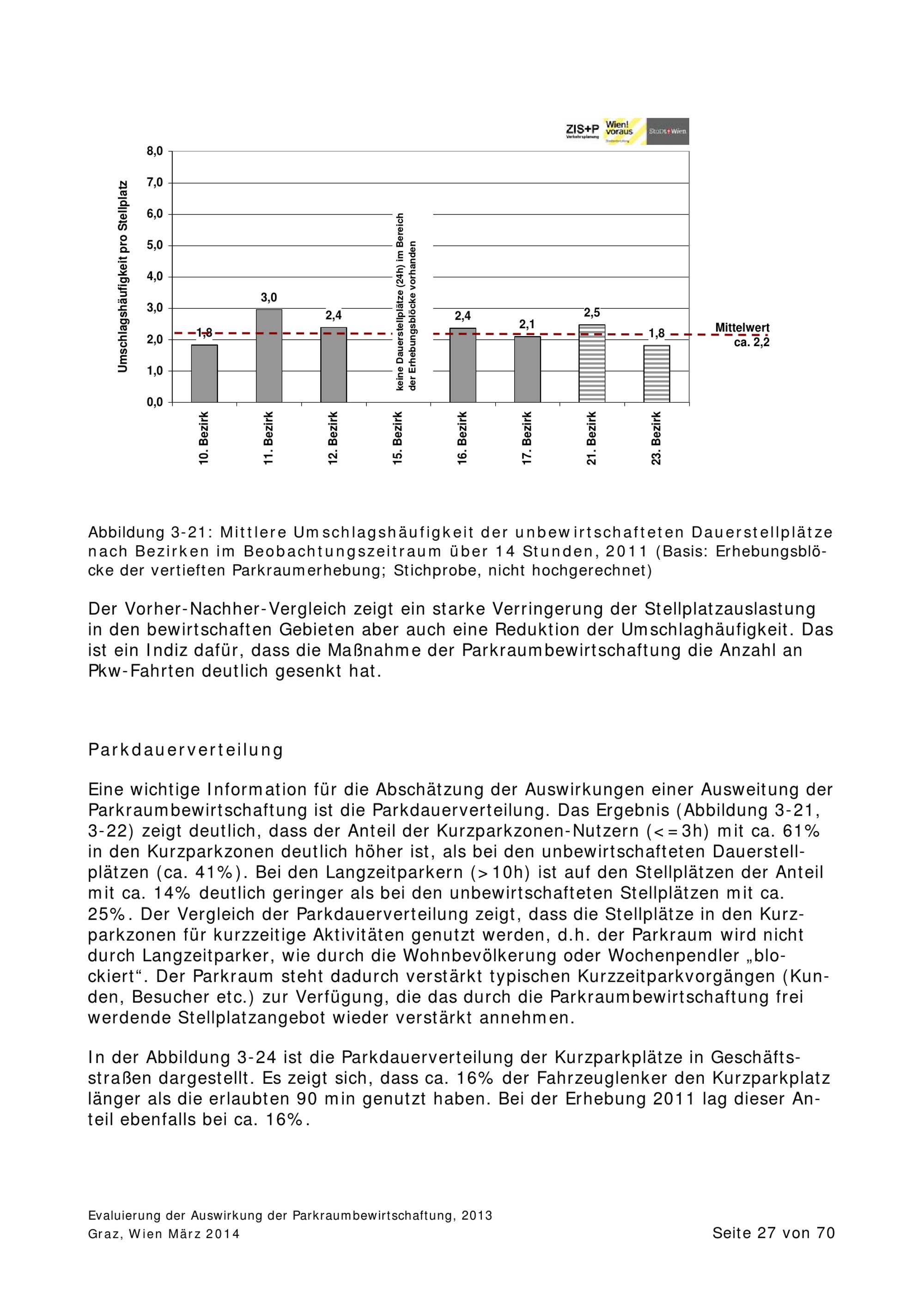 Ausweitung der Parkraumbewirtschaftung in Wien : Evaluierung der Auswirkung der Ausweitung der Parkraumbewirtschaftung auf die Parkraumnachfrage / Magistratsabteilung 18 - Stadtentwicklung und Stadtplanung
