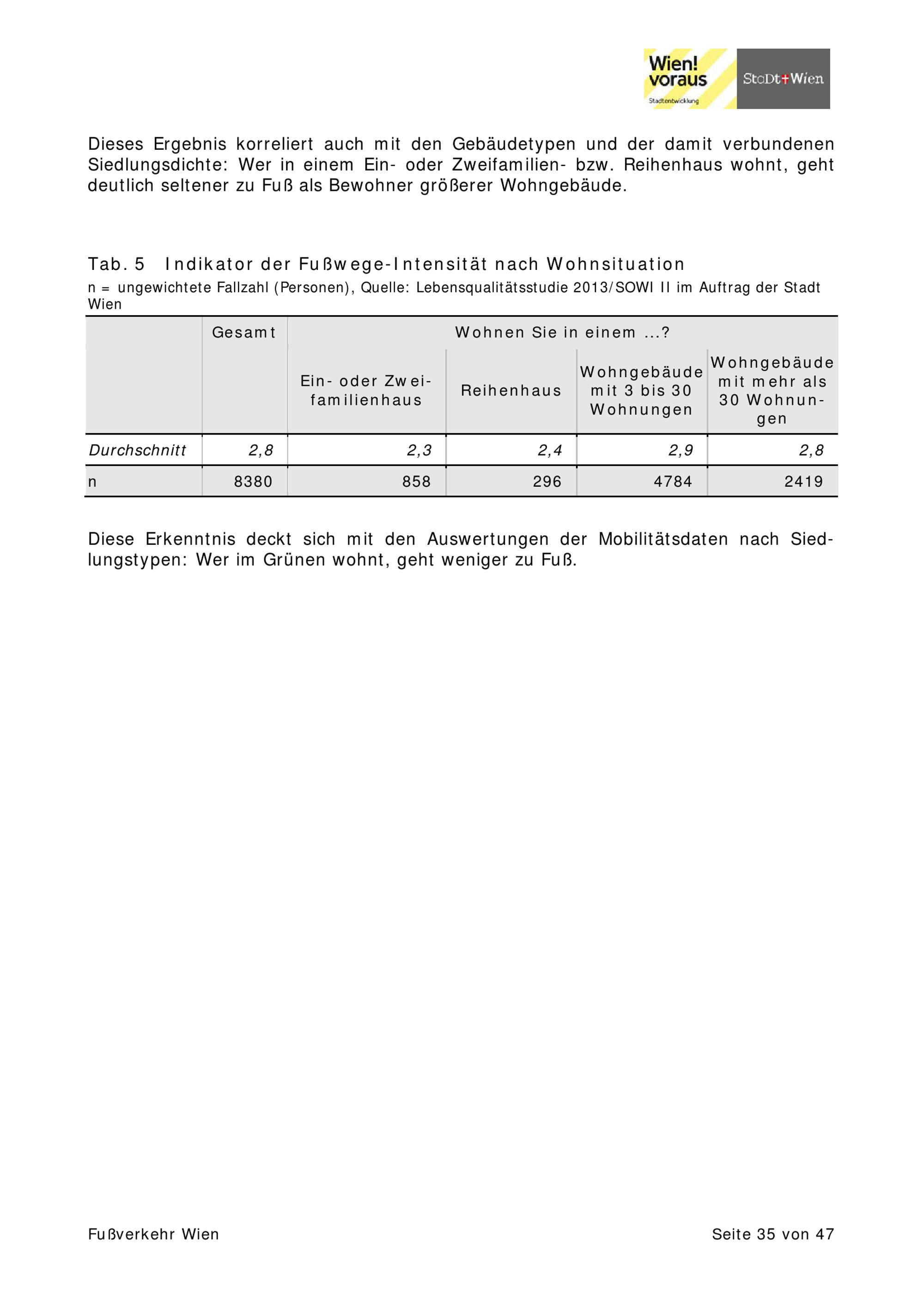 Zu Fuß gehen in Wien : Vertiefte Auswertung des Mobilitätsverhaltens der Wiener Bevölkerung für das zu Fuß gehen ; Endbericht vom 10. November 2015 / Magistratsabteilung 18 - Stadtentwicklung und Stadtplanung