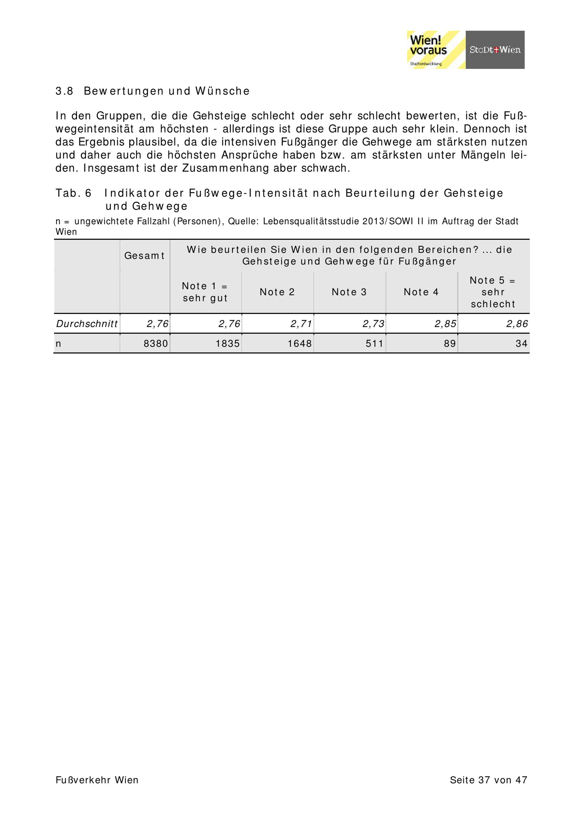 Zu Fuß gehen in Wien : Vertiefte Auswertung des Mobilitätsverhaltens der Wiener Bevölkerung für das zu Fuß gehen ; Endbericht vom 10. November 2015 / Magistratsabteilung 18 - Stadtentwicklung und Stadtplanung