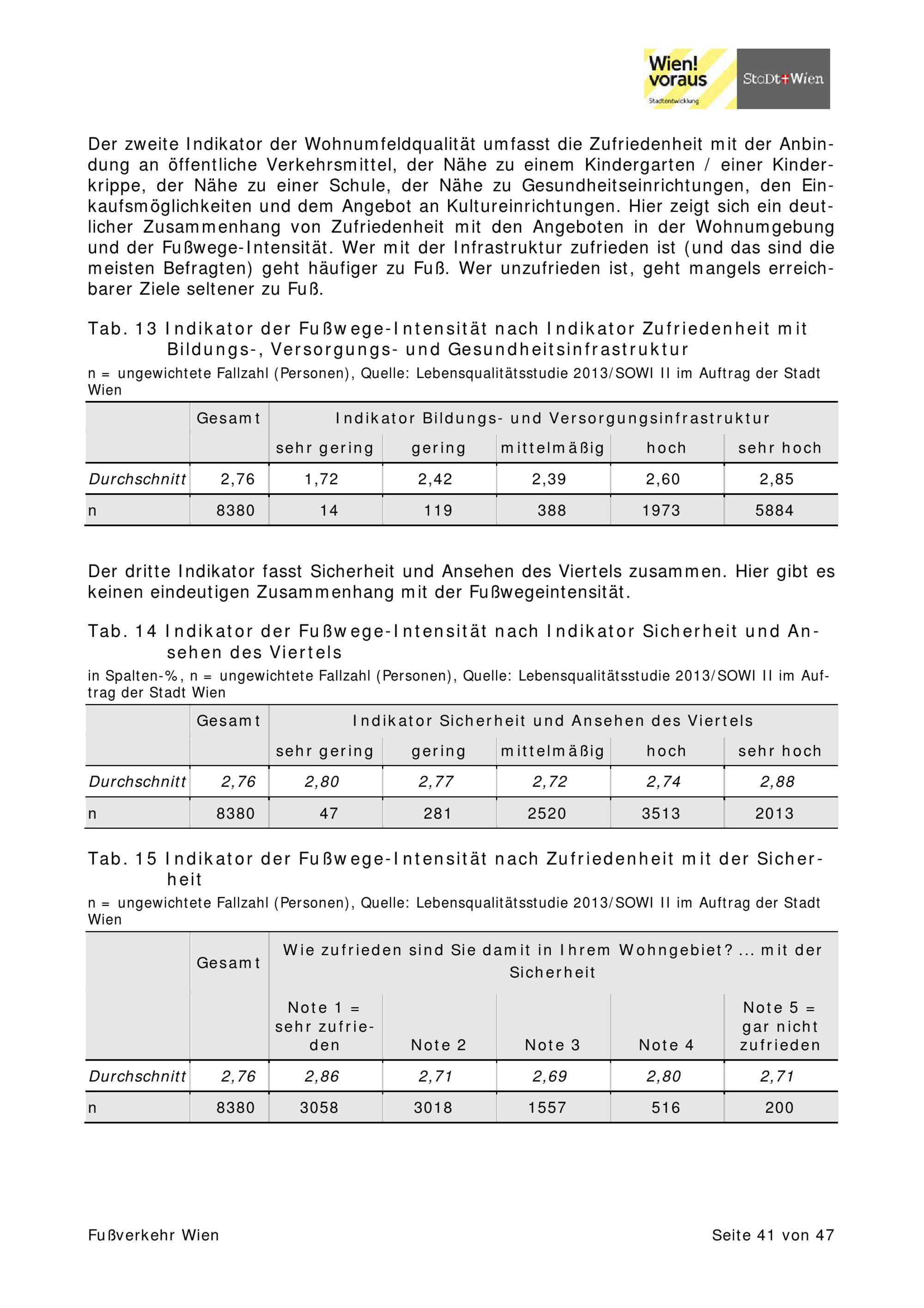 Zu Fuß gehen in Wien : Vertiefte Auswertung des Mobilitätsverhaltens der Wiener Bevölkerung für das zu Fuß gehen ; Endbericht vom 10. November 2015 / Magistratsabteilung 18 - Stadtentwicklung und Stadtplanung