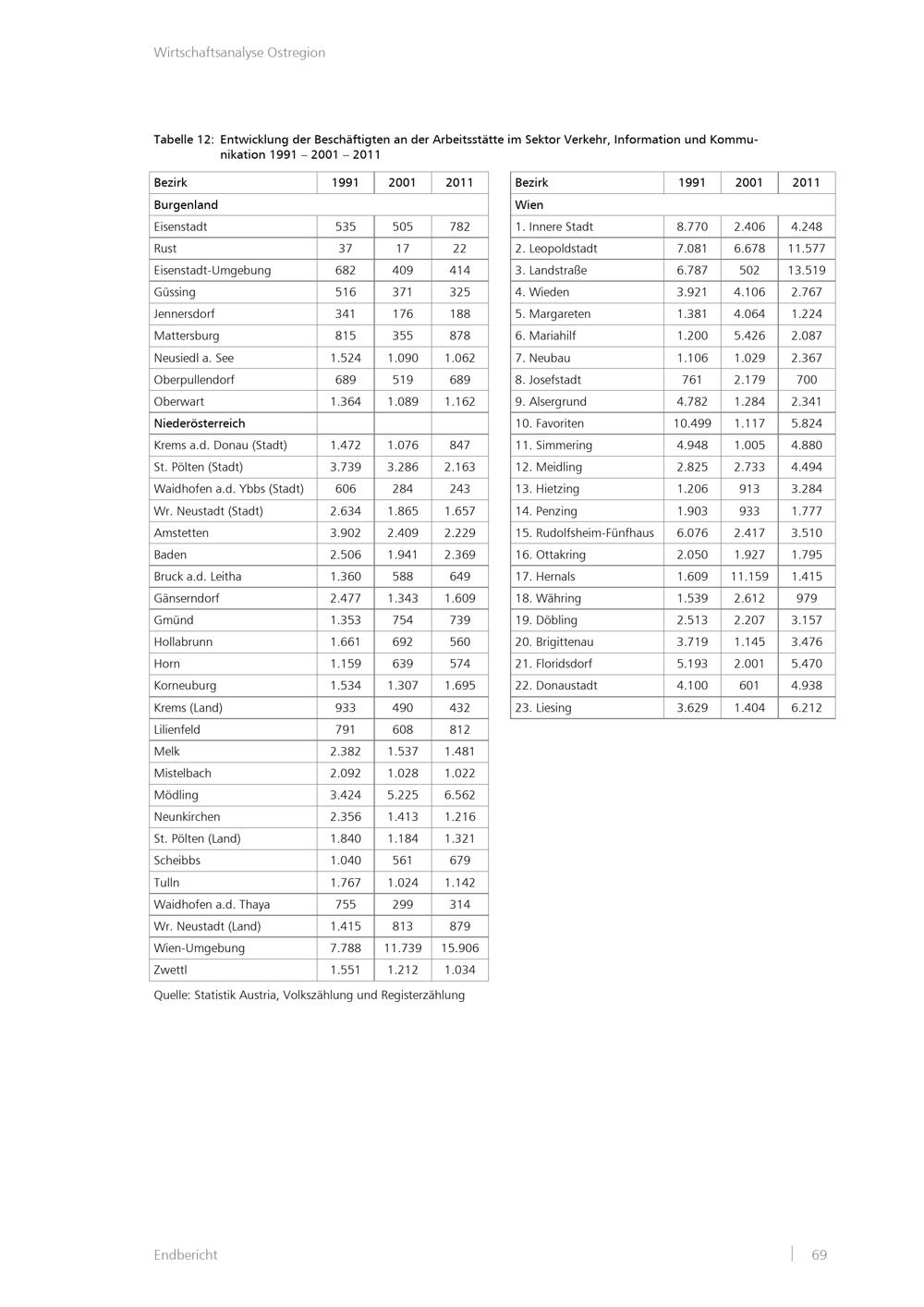 Wirtschaftsanalyse Ostregion : Wirtschafts- und Arbeitsmarktentwicklung in Wien, Niederösterreich und dem Burgenland mit Schwerpunkt auf Produktion und DienstleistungenEndbericht / Magistratsabteilung 18 - Stadtentwicklung und Stadtplanung