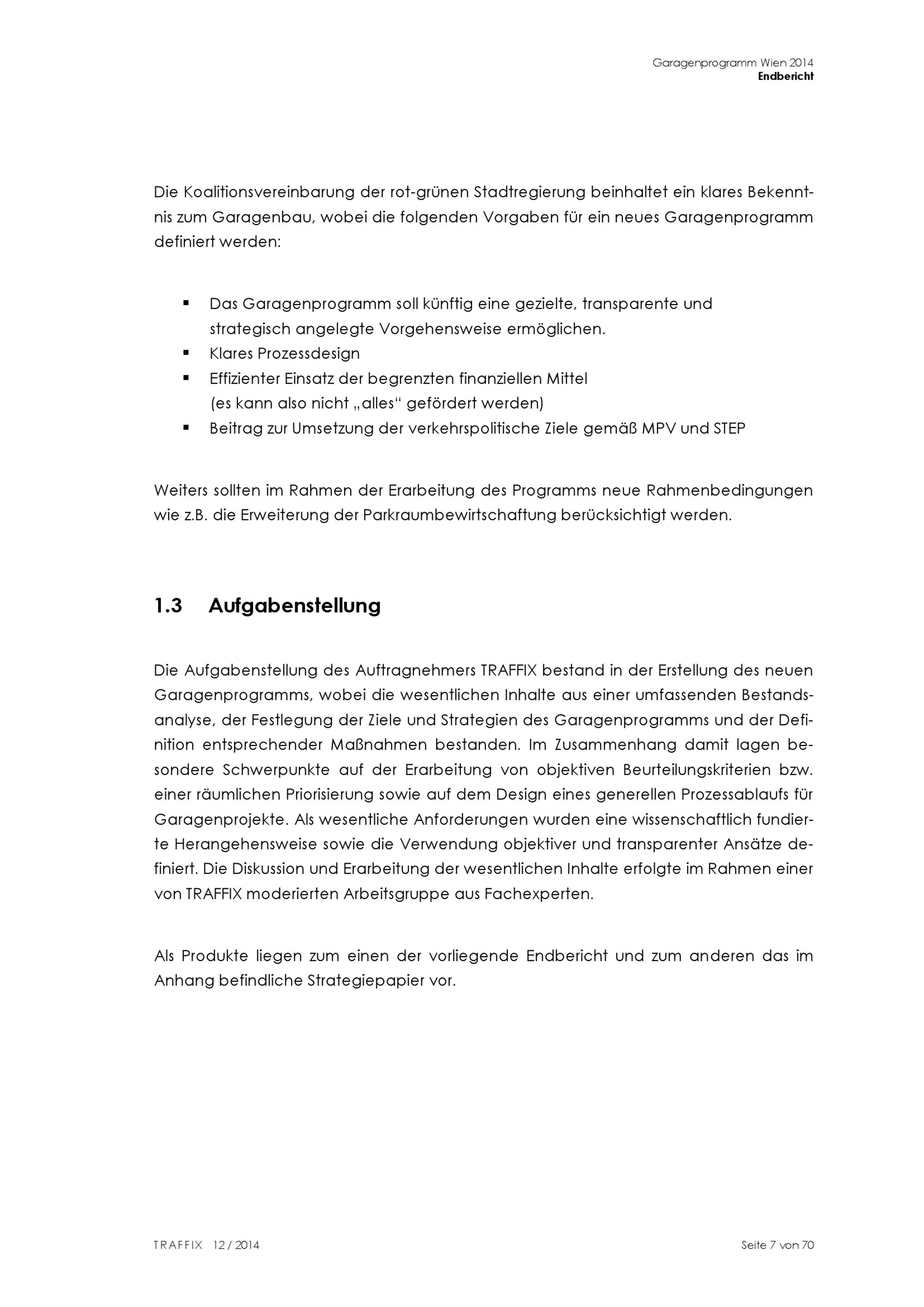Garagenförderung in Wien : Garagenprogramm 2014 : Endbericht / Auftraggeber: Magistrat der Stadt Wien MA 18 - Stadtentwicklung und Stadtplanung vertreten durch: Dipl.-Ing. Roman Riedel, Magistratsdirektion der Stadt Wien vertreten durch: Dipl.-Ing. Thomas Keller ; Auftragnehmer: TRAFFIX Verkehrsplanung GmbH