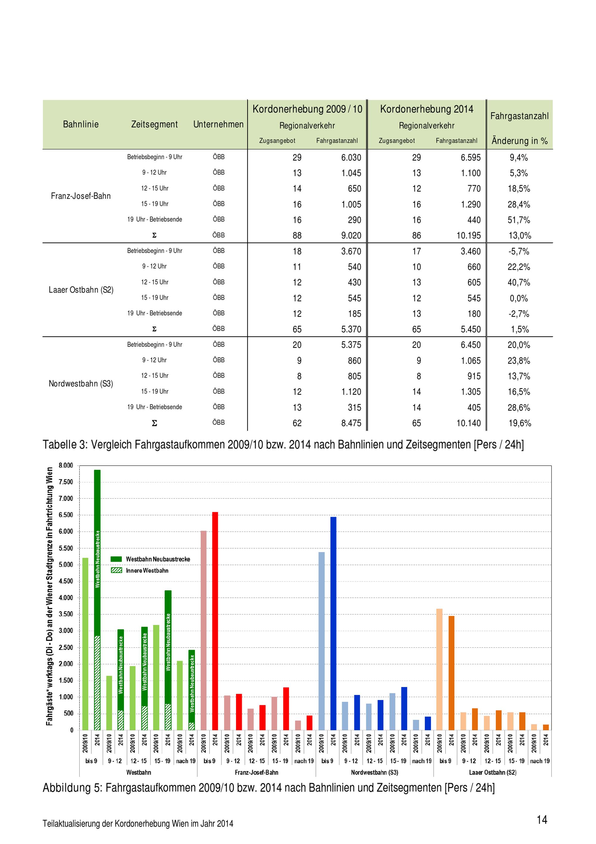 Teilaktualisierung der Kordonerhebung Wien : für die Korridore St. Pölten bis Gänserndorf im Jahr 2014 : Ergebnisse aus dem Endbericht / Auftraggeber: Amt der niederösterreichischen Landesregierung Gruppe Raumordnung, Umwelt und Verkehr, Magistrat der Stadt Wien MA 18 - Stadtentwicklung u Stadtplanung ; Auftragnehmer: Technisches Büro für Verkehrswesen und Verkehrswirtschaft, DI Rittler Christian ; Koordination/Bearbeitung: Planungsgemeinschaft OST im Rahmen der PGO-Plattform Regionalverkehr