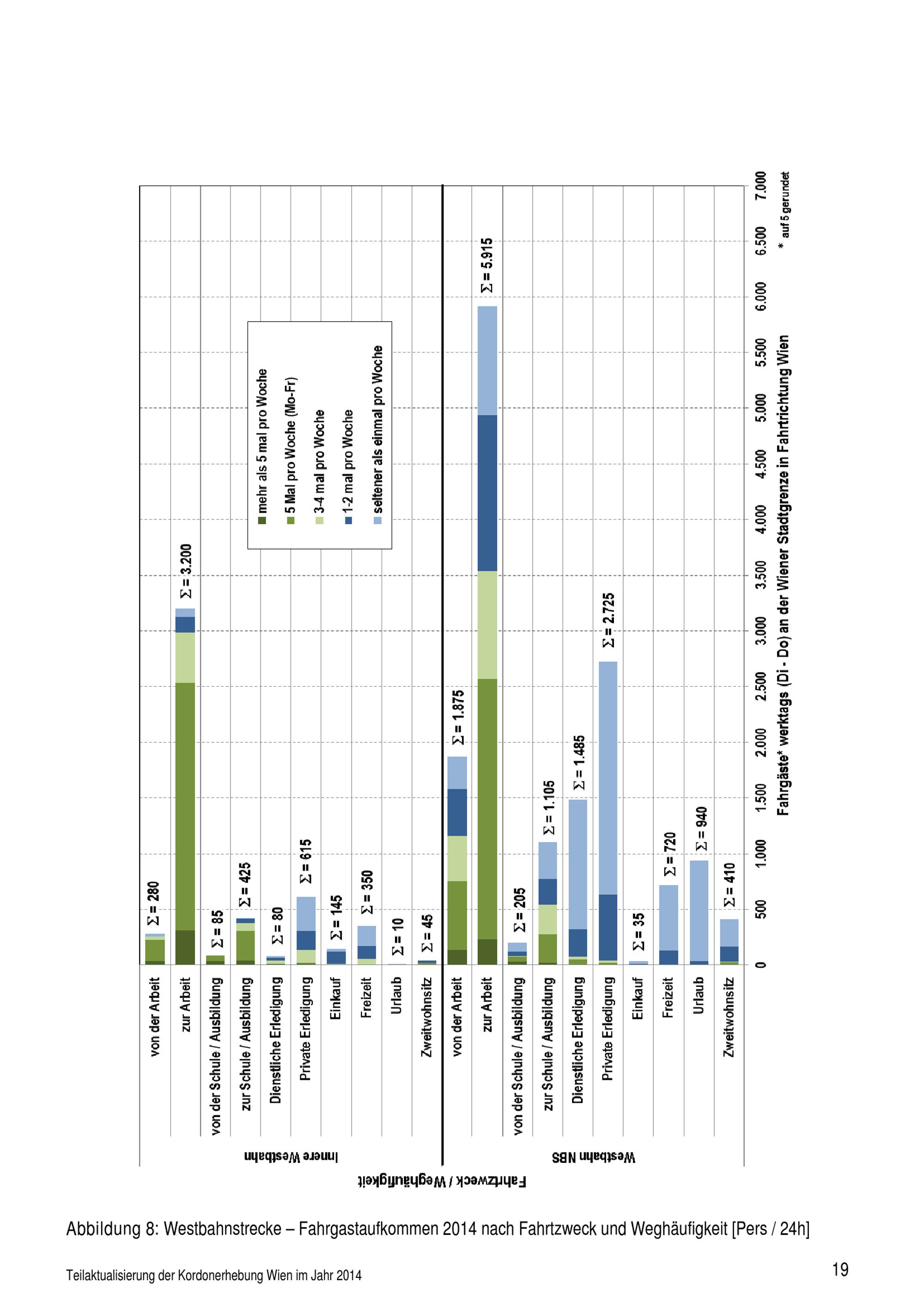 Teilaktualisierung der Kordonerhebung Wien : für die Korridore St. Pölten bis Gänserndorf im Jahr 2014 : Ergebnisse aus dem Endbericht / Auftraggeber: Amt der niederösterreichischen Landesregierung Gruppe Raumordnung, Umwelt und Verkehr, Magistrat der Stadt Wien MA 18 - Stadtentwicklung u Stadtplanung ; Auftragnehmer: Technisches Büro für Verkehrswesen und Verkehrswirtschaft, DI Rittler Christian ; Koordination/Bearbeitung: Planungsgemeinschaft OST im Rahmen der PGO-Plattform Regionalverkehr