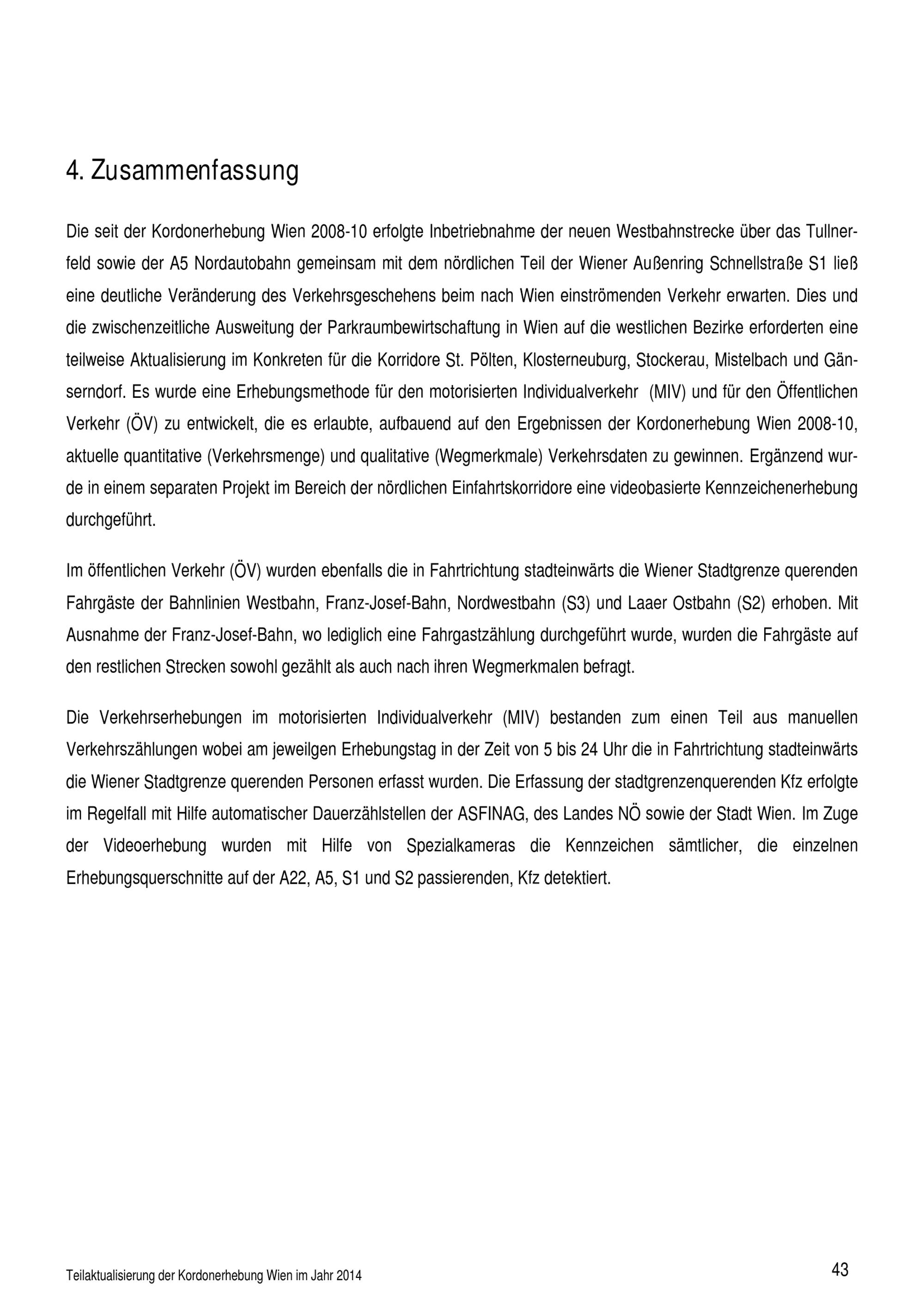 Teilaktualisierung der Kordonerhebung Wien : für die Korridore St. Pölten bis Gänserndorf im Jahr 2014 : Ergebnisse aus dem Endbericht / Auftraggeber: Amt der niederösterreichischen Landesregierung Gruppe Raumordnung, Umwelt und Verkehr, Magistrat der Stadt Wien MA 18 - Stadtentwicklung u Stadtplanung ; Auftragnehmer: Technisches Büro für Verkehrswesen und Verkehrswirtschaft, DI Rittler Christian ; Koordination/Bearbeitung: Planungsgemeinschaft OST im Rahmen der PGO-Plattform Regionalverkehr