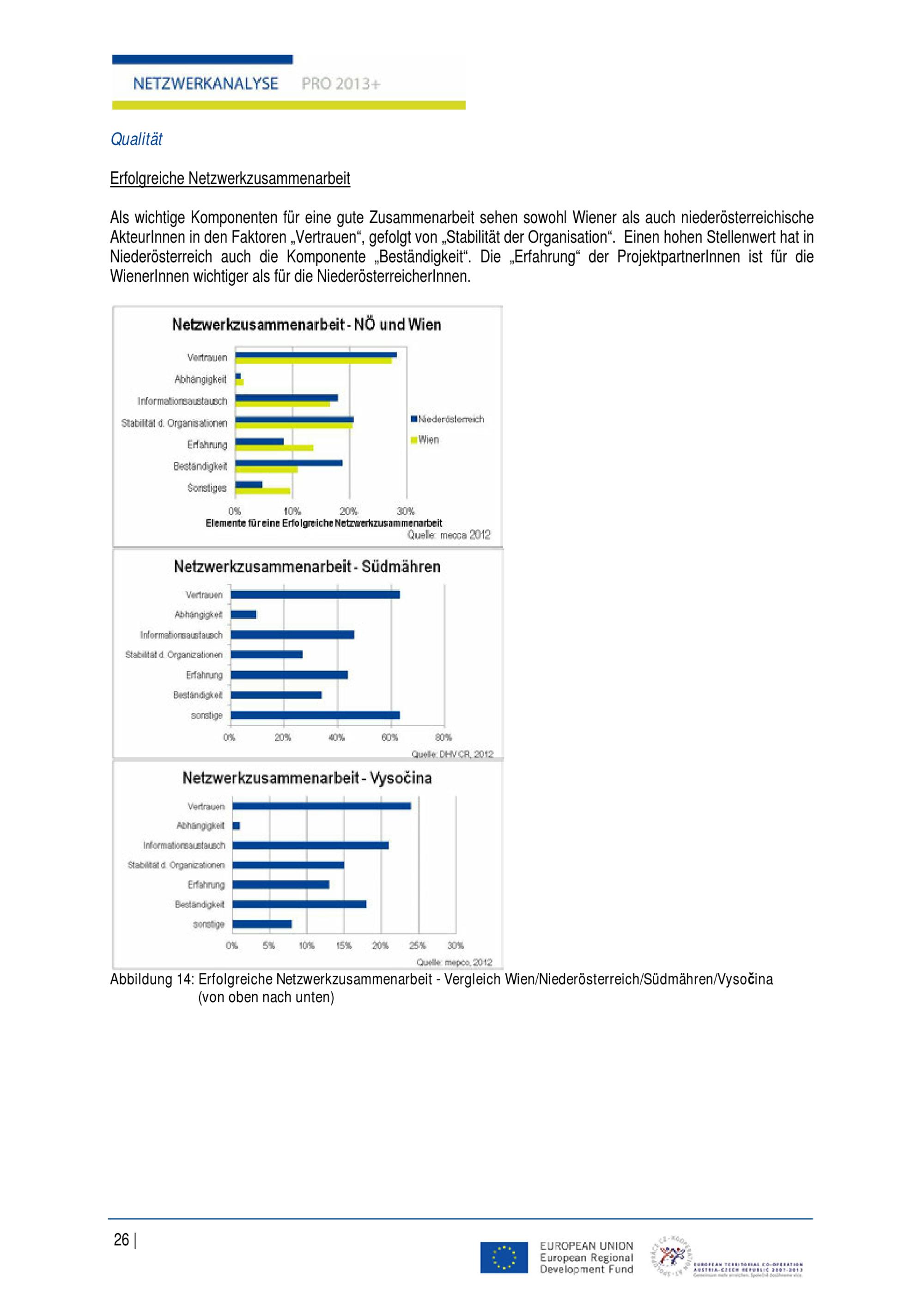 Bericht Netzwerkanalyse : erarbeitet im Rahmen des Projektes "Partnerschaft Österreich - Tschechien in der Europaregion Mitte - PRO 2013+" / AuftraggeberIn: Kreis Südmähren ; Magistrat der Stadt Wien Magistratsabteilung 18 - Stadtentwicklung und Stadtplanung ; Amt der Niederösterreichischen Landesregierung Abteilung RU 2 - Raumordnung und Regionalpolitik ; Kraj Vysočina Odbor regionálního rozvoje