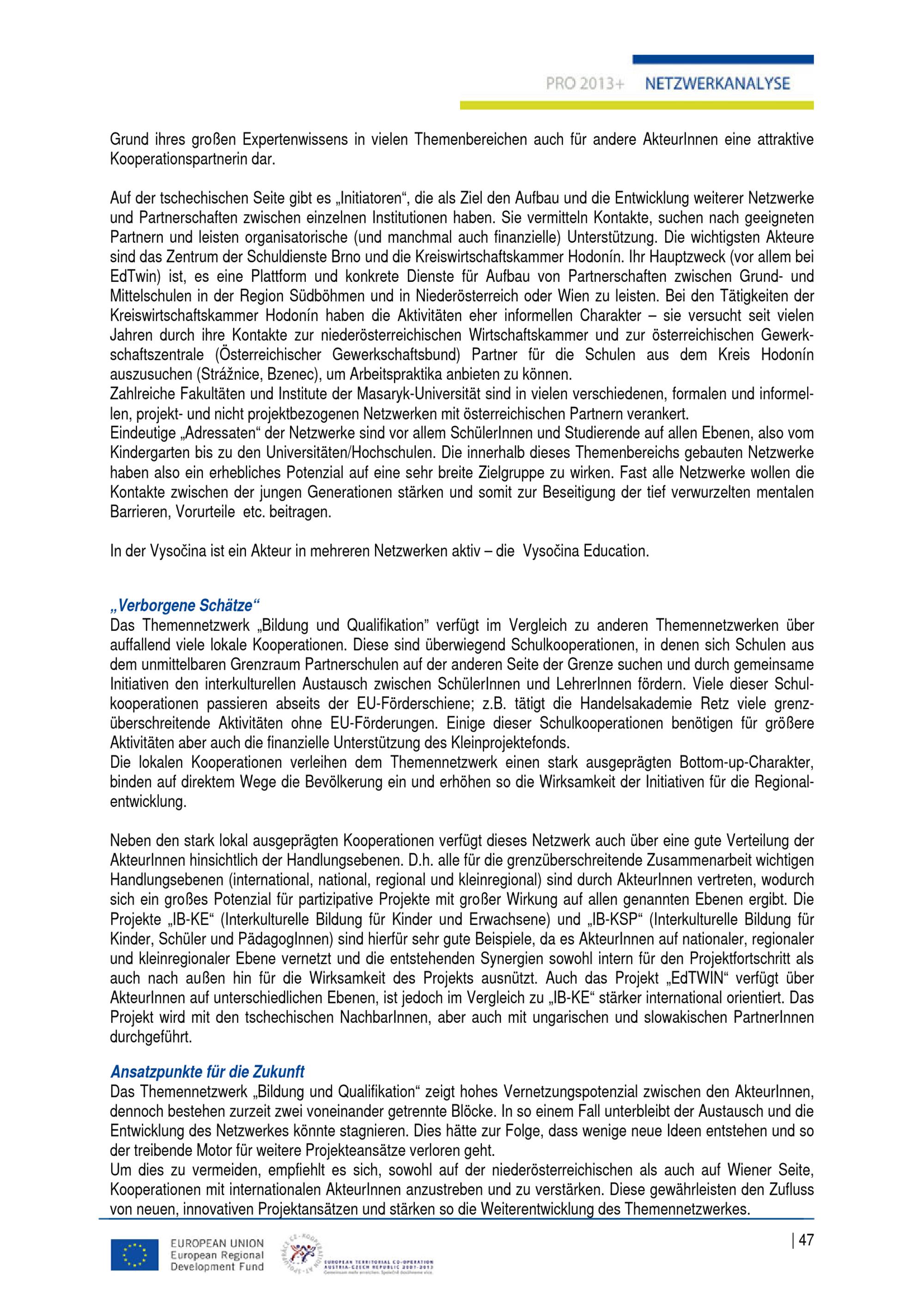 Bericht Netzwerkanalyse : erarbeitet im Rahmen des Projektes "Partnerschaft Österreich - Tschechien in der Europaregion Mitte - PRO 2013+" / AuftraggeberIn: Kreis Südmähren ; Magistrat der Stadt Wien Magistratsabteilung 18 - Stadtentwicklung und Stadtplanung ; Amt der Niederösterreichischen Landesregierung Abteilung RU 2 - Raumordnung und Regionalpolitik ; Kraj Vysočina Odbor regionálního rozvoje