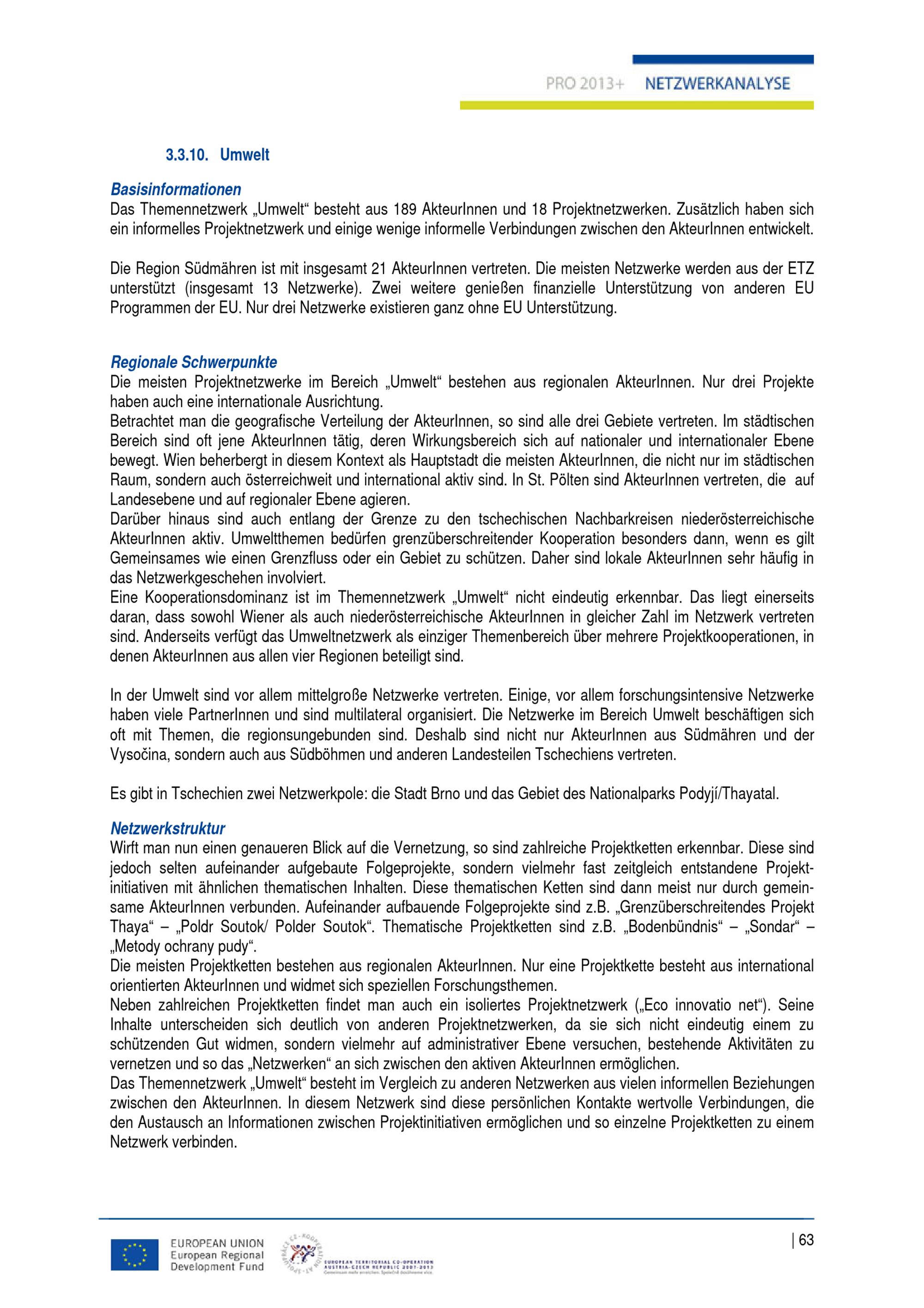 Bericht Netzwerkanalyse : erarbeitet im Rahmen des Projektes "Partnerschaft Österreich - Tschechien in der Europaregion Mitte - PRO 2013+" / AuftraggeberIn: Kreis Südmähren ; Magistrat der Stadt Wien Magistratsabteilung 18 - Stadtentwicklung und Stadtplanung ; Amt der Niederösterreichischen Landesregierung Abteilung RU 2 - Raumordnung und Regionalpolitik ; Kraj Vysočina Odbor regionálního rozvoje