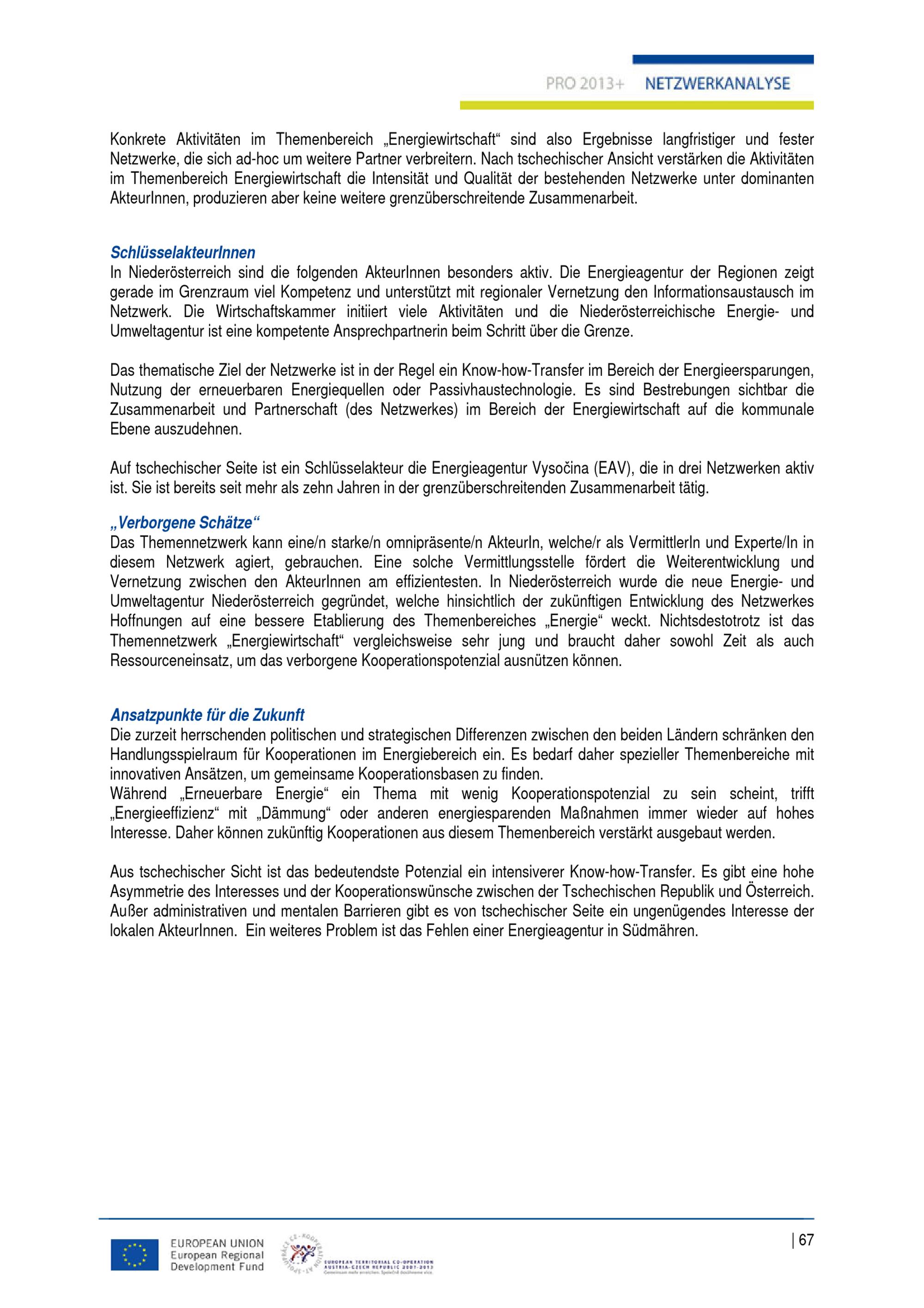 Bericht Netzwerkanalyse : erarbeitet im Rahmen des Projektes "Partnerschaft Österreich - Tschechien in der Europaregion Mitte - PRO 2013+" / AuftraggeberIn: Kreis Südmähren ; Magistrat der Stadt Wien Magistratsabteilung 18 - Stadtentwicklung und Stadtplanung ; Amt der Niederösterreichischen Landesregierung Abteilung RU 2 - Raumordnung und Regionalpolitik ; Kraj Vysočina Odbor regionálního rozvoje