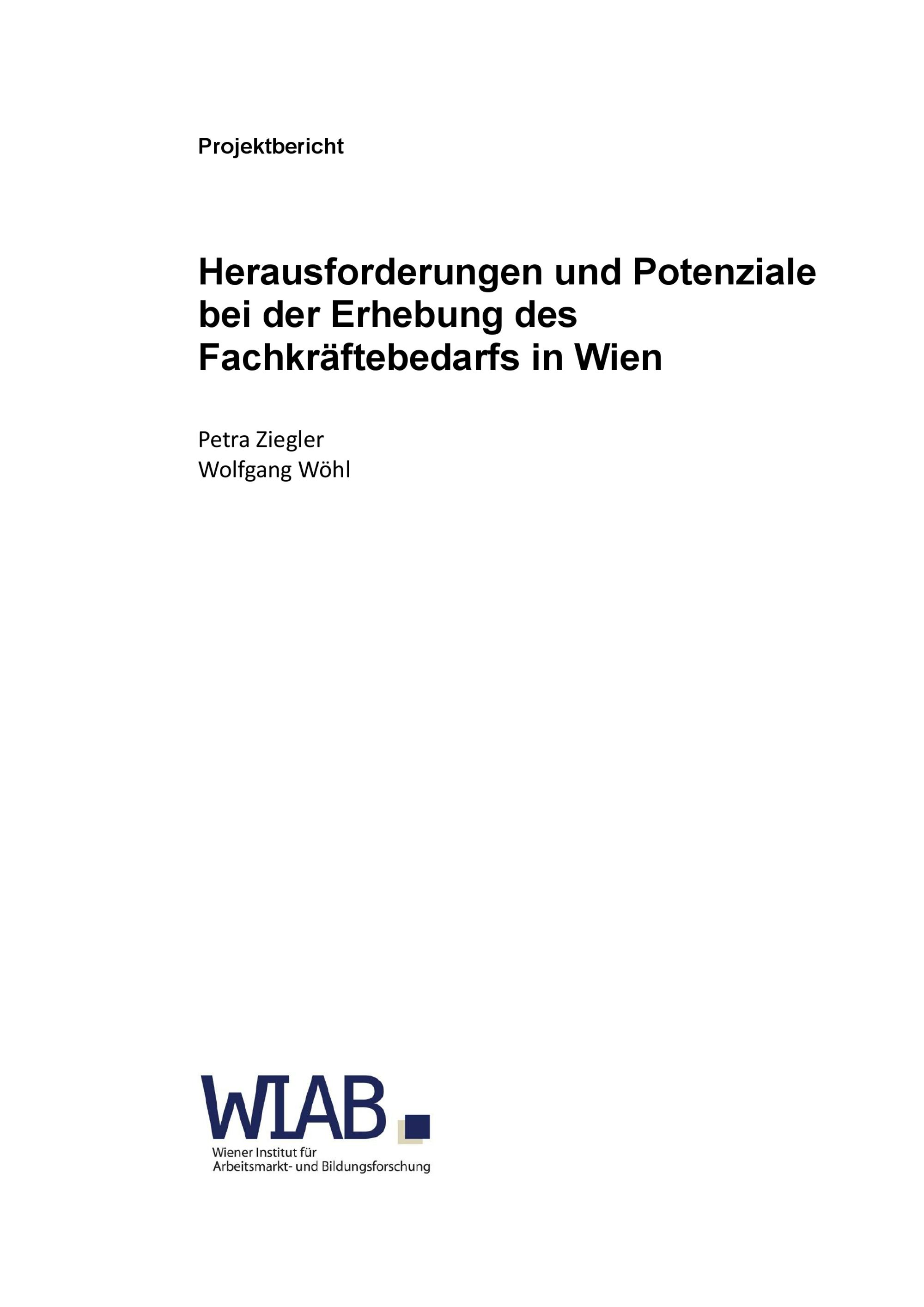 Herausforderungen und Potenziale bei der Erhebung des Fachkräftebedarfs in Wien : Projektbericht / Petra Ziegler, Wolfgang Wöhl ; WIAB - Wiener Institut für Arbeitsmarkt- und Bildungsforschung ; Studie im Auftrag der MA 23 und des waff