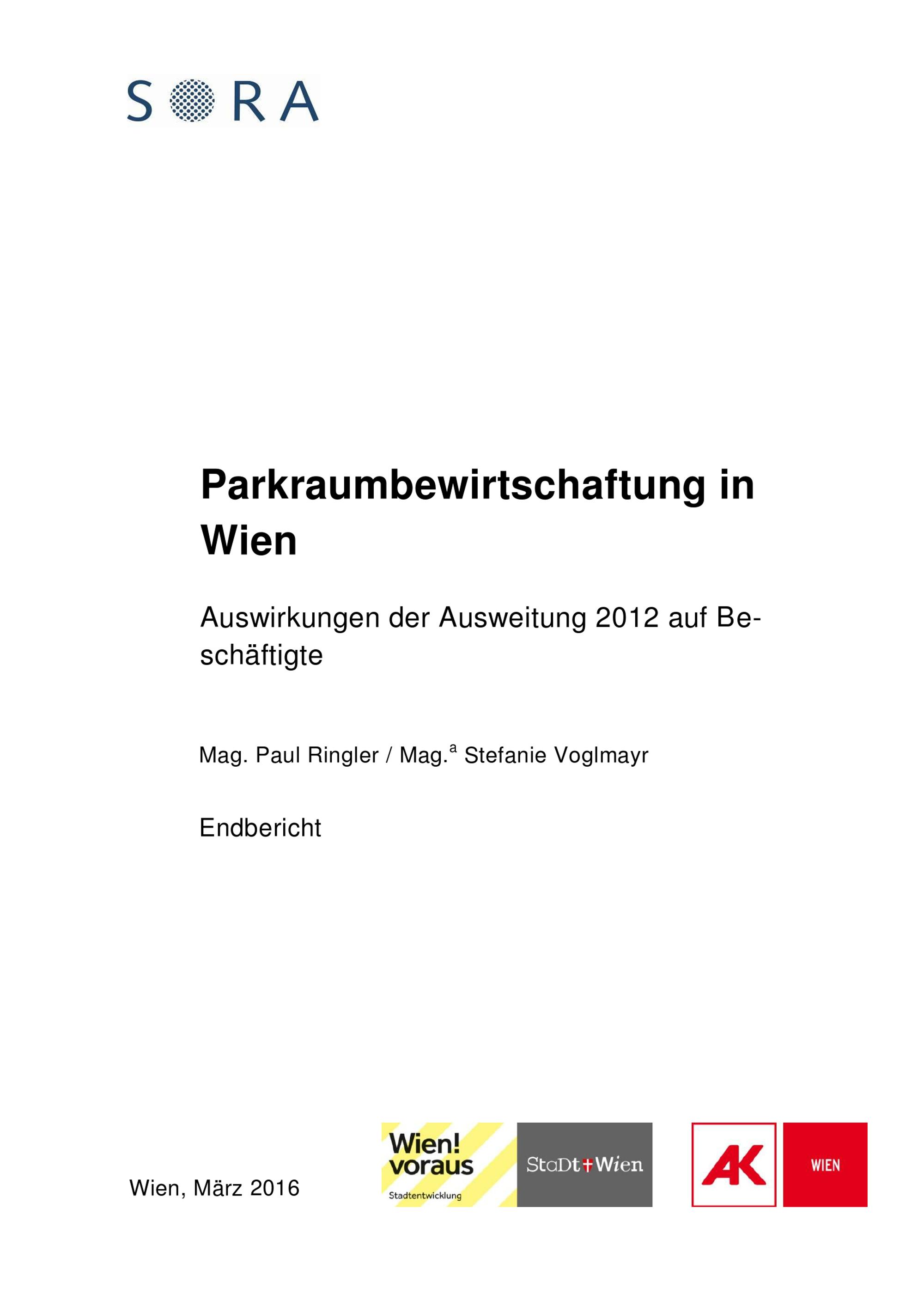 Parkraumbewirtschaftung in Wien : Auswirkungen der Ausweitung 2012 auf Beschäftigte ; Endbericht / Paul Ringler, Voglmayr Stefanie ; Auftraggeber: Stadt Wien - Magistratsabteilung 18