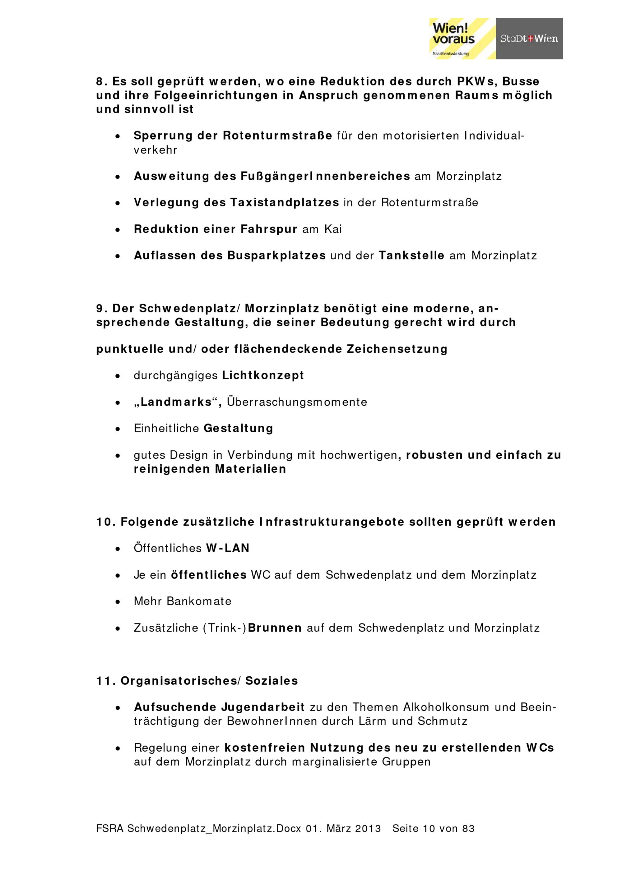 Funktions- und Sozialraumanalyse Schwedenplatz/Morzinplatz : Endbericht / im Auftrag der Magistratsabteilung 18 Stadtentwicklung und Stadtplanung ; Verfasserin: Andrea Breitfuss