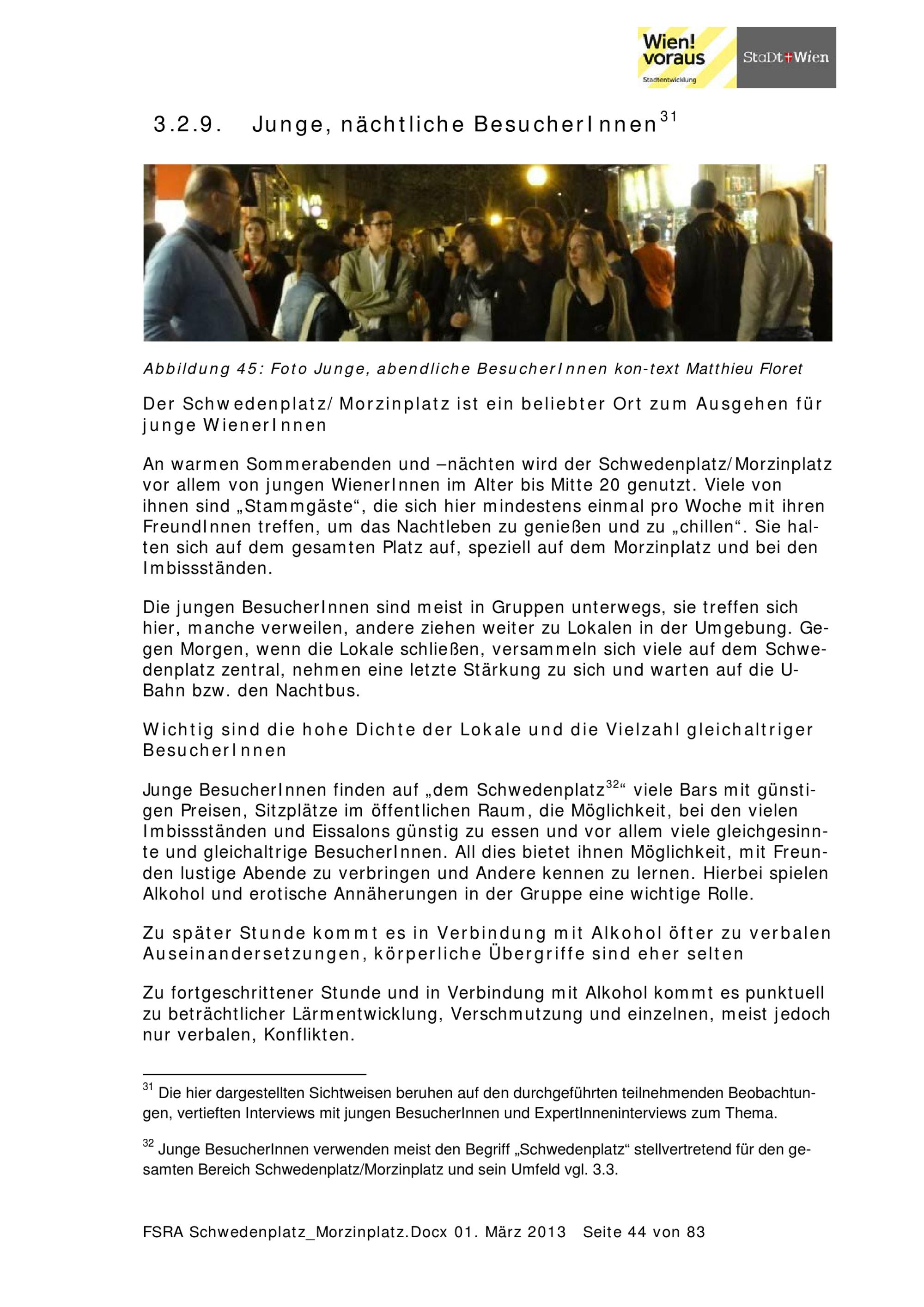 Funktions- und Sozialraumanalyse Schwedenplatz/Morzinplatz : Endbericht / im Auftrag der Magistratsabteilung 18 Stadtentwicklung und Stadtplanung ; Verfasserin: Andrea Breitfuss