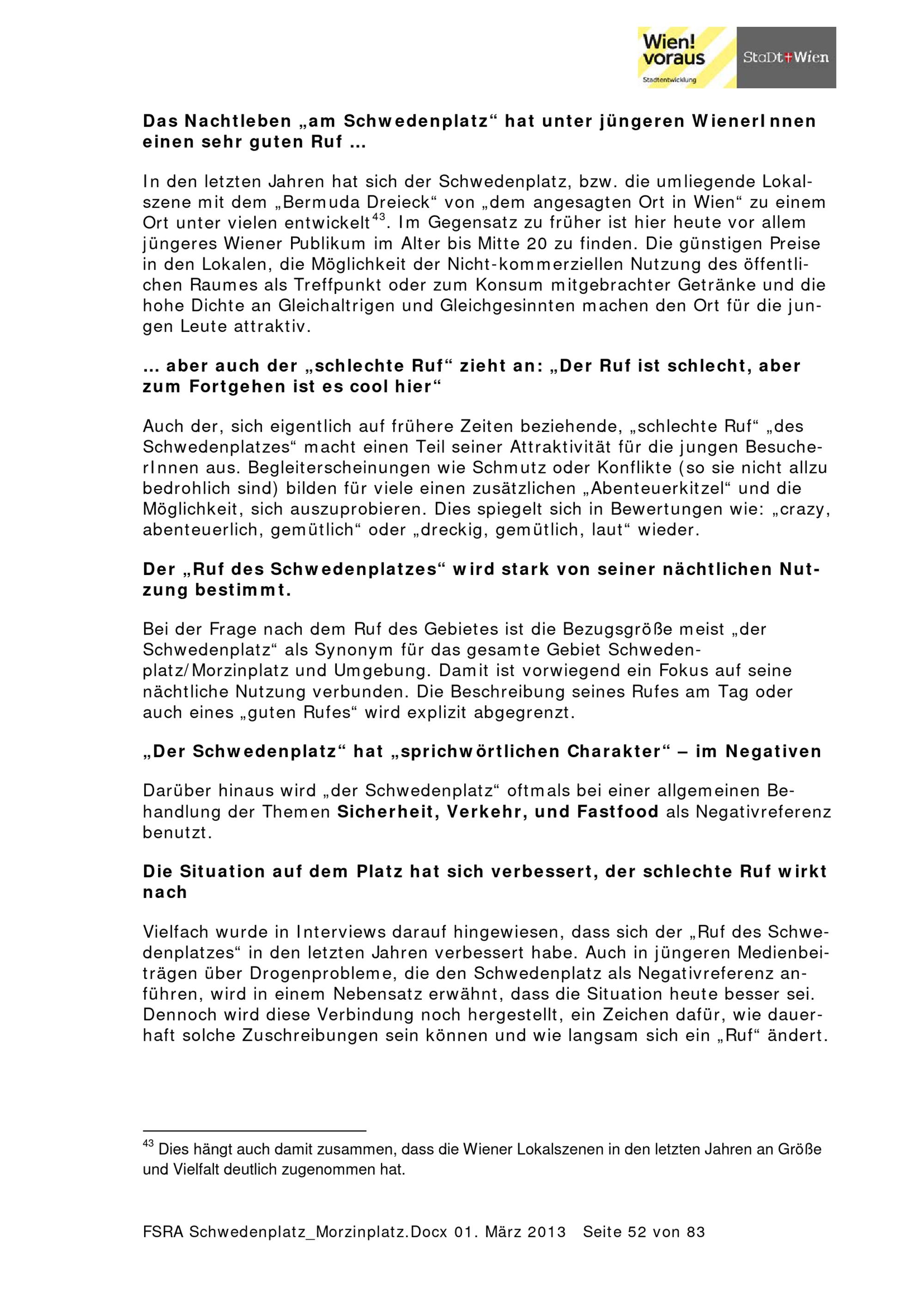Funktions- und Sozialraumanalyse Schwedenplatz/Morzinplatz : Endbericht / im Auftrag der Magistratsabteilung 18 Stadtentwicklung und Stadtplanung ; Verfasserin: Andrea Breitfuss