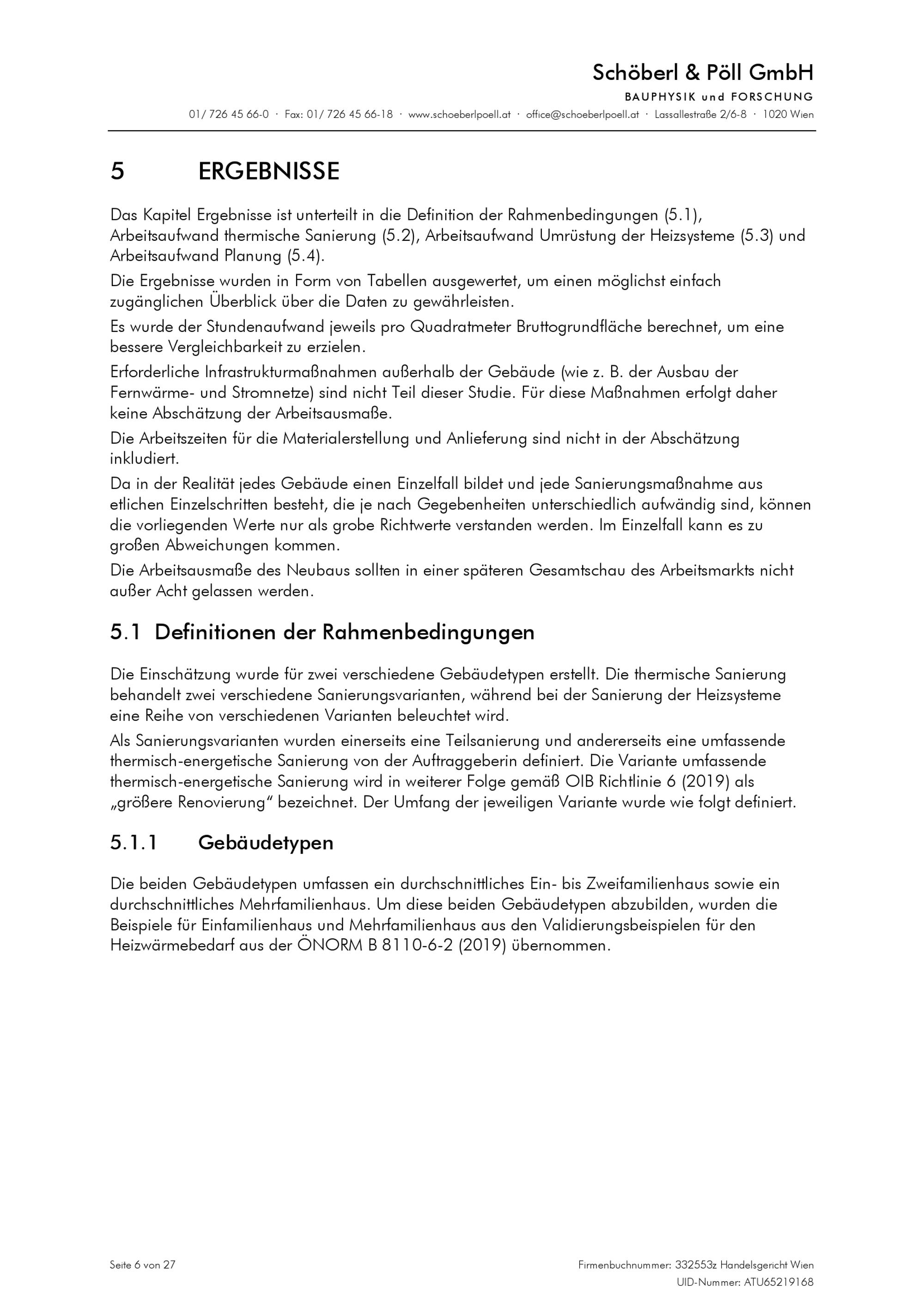 Arbeitsmarktstudie zur Dekarbonisierung des Gebäudebestands in Wien : Einschätzung des Arbeitsaufwands pro Beruf für die Umrüstung von Heizsystemen und Sanierung von Gebäuden / Schöberl & Pöll GmbH ; Auftraggeber: Stadt Wien - Wirtschaft, Arbeit und Statistik, Wiener Arbeitnehmer*innen Förderungsfonds - waff