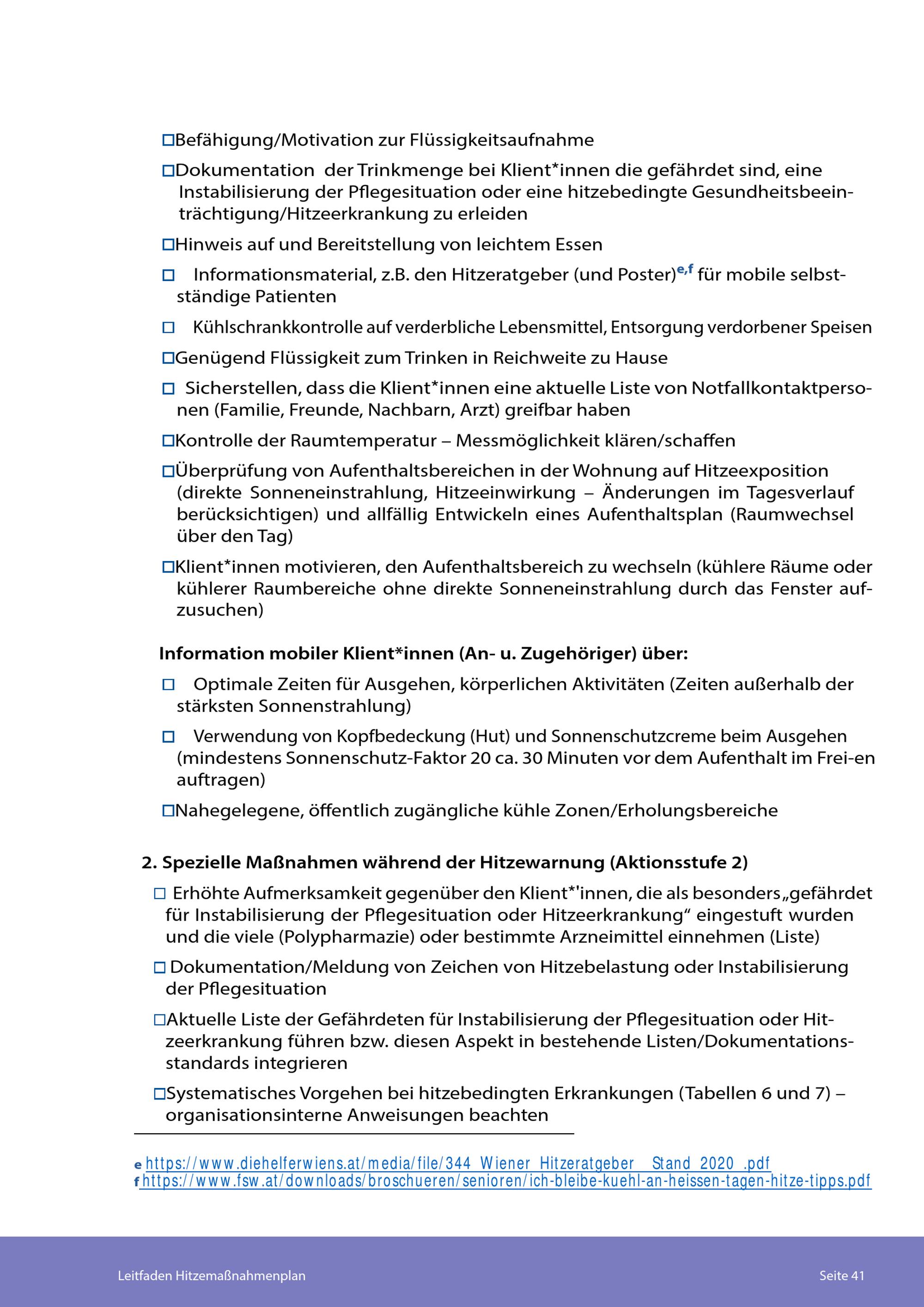 Leitfaden Hitzemaßnahmenplan : für medizinische und pflegerische Einrichtungen zur Erstellung eigener Hitzemaßnahmenpläne / Stadt Wien - Gesundheitsdienst