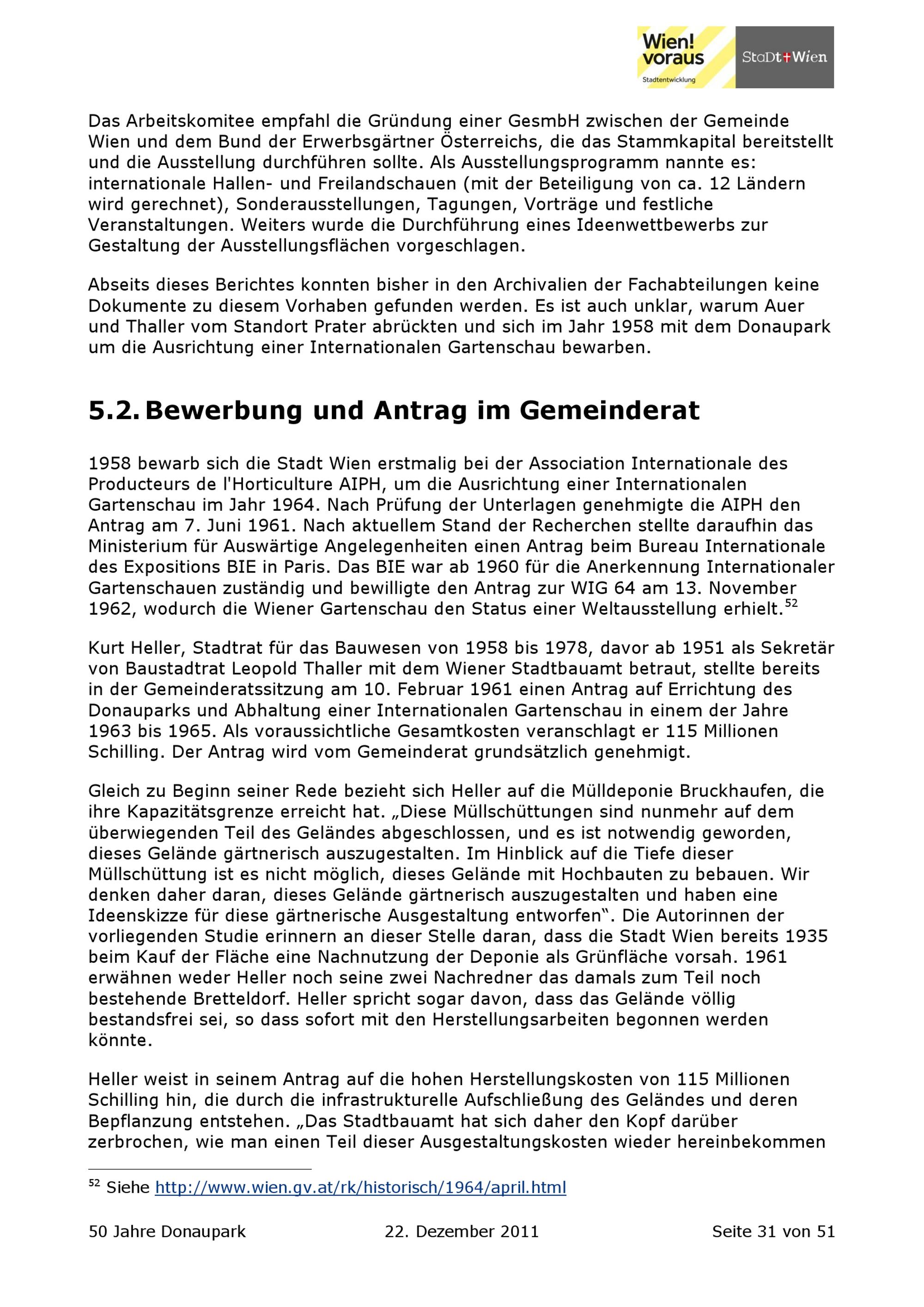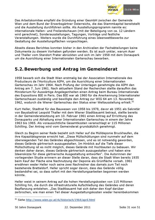 50 Jahre Donaupark: stadtplanerische Vision und Dimension : Studie zu den stadtplanerischen Visionen und Strategien, die zur Realisierung der Wiener Internationalen Gartenschau WIG 64 und zur Errichtung des Donauparks führten ; Endbericht / Im Auftrag der Magistratsabteilung 18 - Stadtentwicklung und Stadtplanung ; Auftragnehmer: Universität für Bodenkultur Wien ILA Institut für Landschaftsarchitektur ; Lilli Licka, Ulrike Krippner