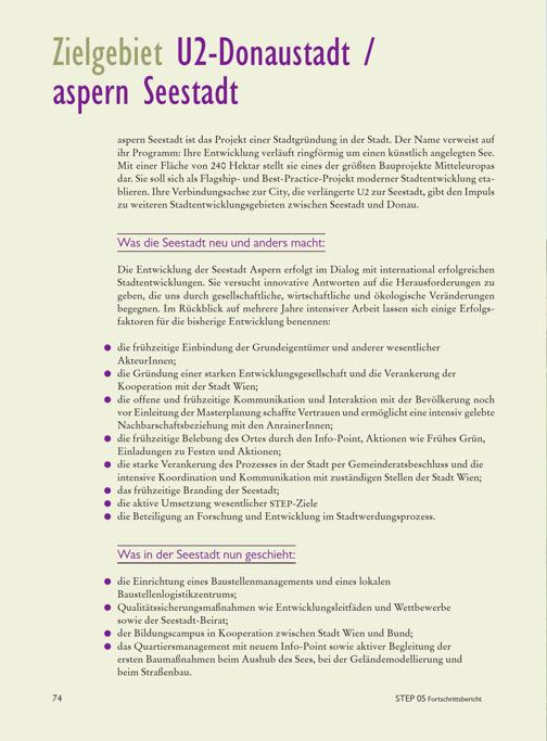 STEP 05 - Fortschrittsbericht 2010 / Herausgeber: Stadtentwicklung Wien, Magistratsabteilung 18 - Stadtentwicklung und Stadtplanung ; Redaktionsteam: Kurt Puchinger [und 3 weitere] ; Text: Christian Zillner