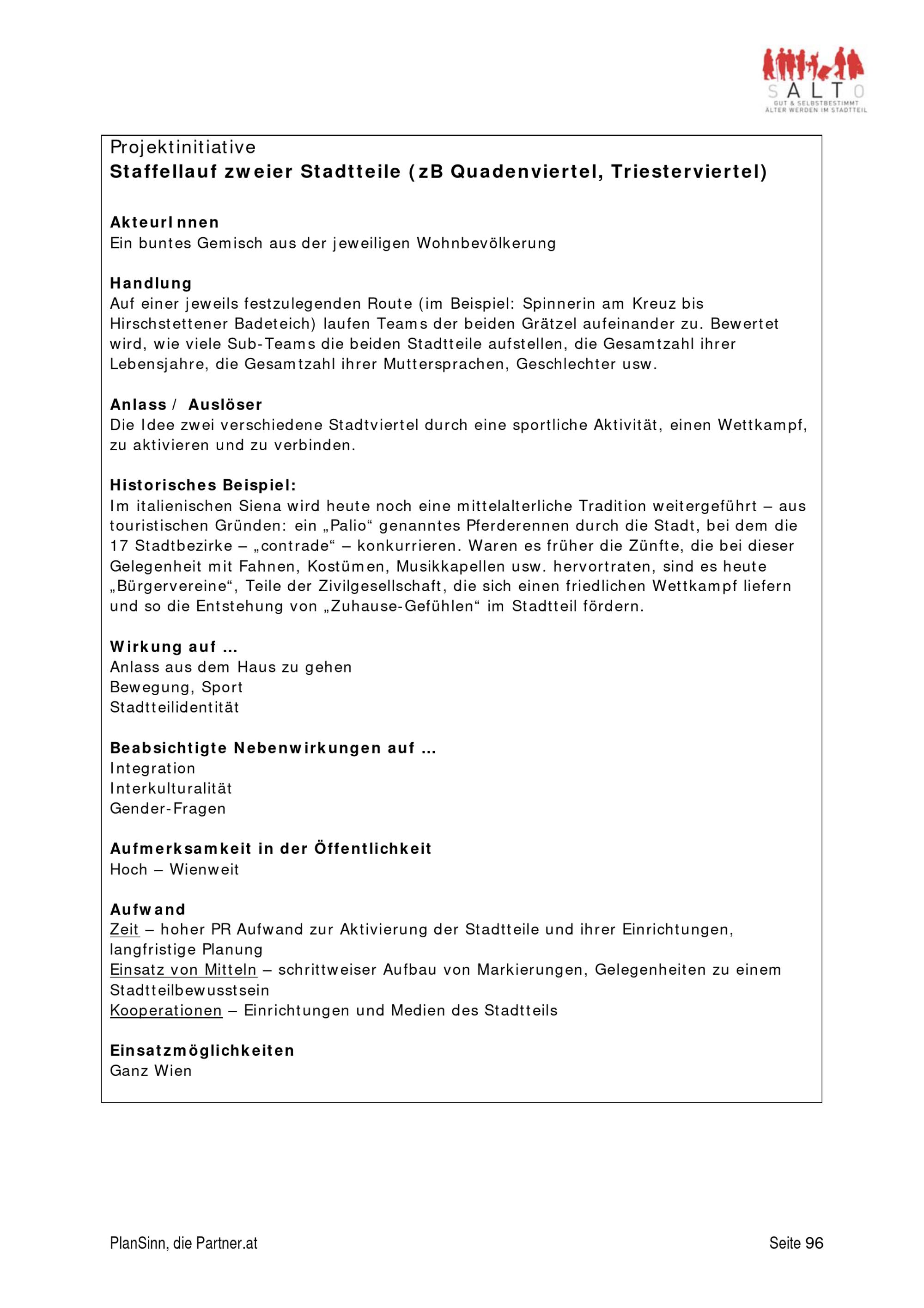 sALTo : gut & selbstbestimmt älter werden im Stadtteil / Im Auftrag von Magistratsabteilung 18 Stadtentwicklung und Stadtplanung Bereichsleitung für Strukturentwicklung ; Auftragnehmer: PlanSinn und die Partner.at ; AutorInnen: Efa Doringer [und 4 weitere]