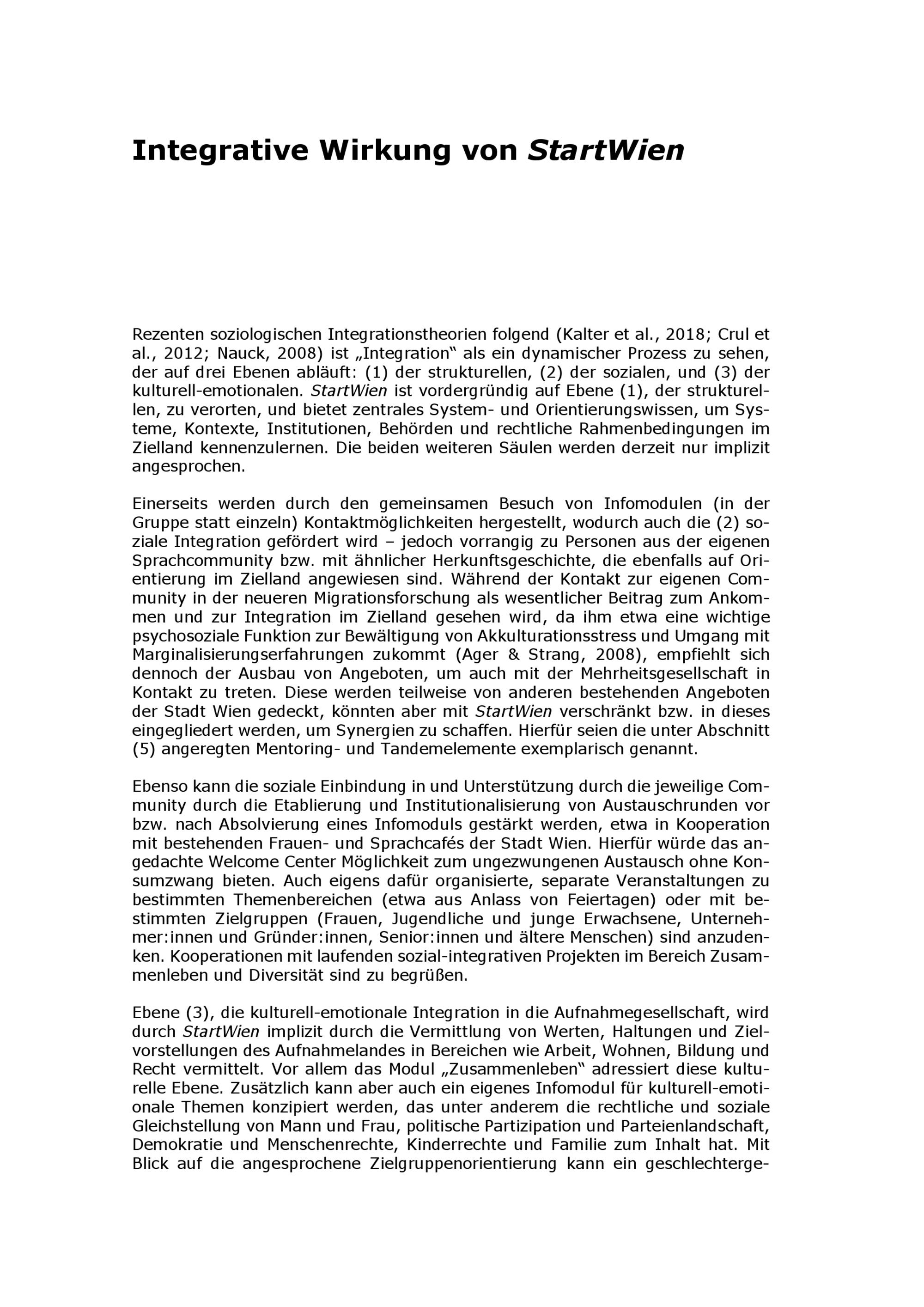 StartWien als zentrale Integrationsmaßnahme für Neuzugewanderte in der Stadt Wien : Expertise zu Zielsetzung, Erreichbarkeit und Messbarkeit / Dr. Judith Kohlenberger