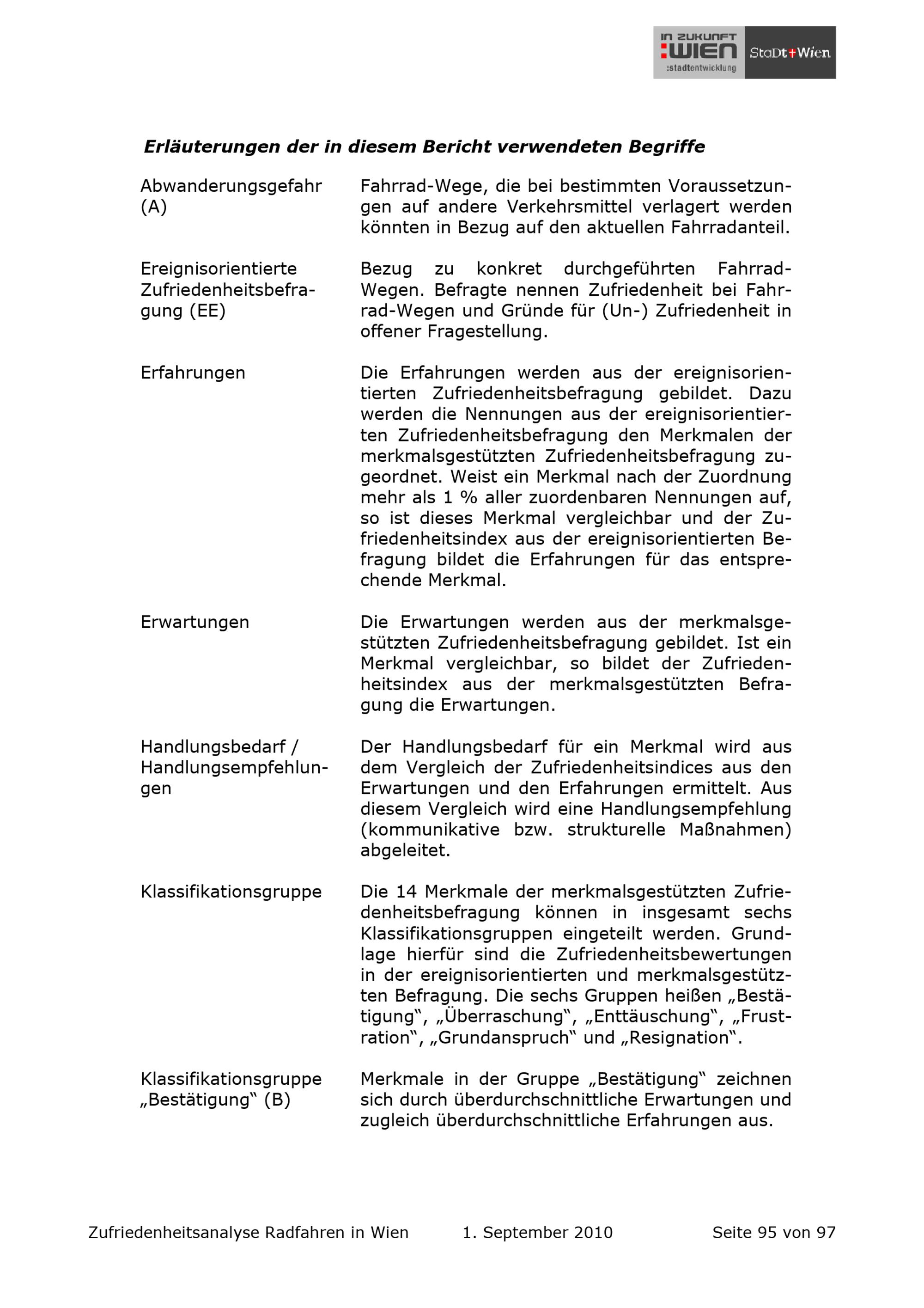 Fahrrad-Mobilität in Wien : Zufriedenheitsanalyse Radfahren in Wien / im Auftrag der Magistratsabteilung 18 - Stadtentwicklung und Stadtplanung ; Konzeption, Analyse und Erstellung: Socialdata Institut für Verkehrs- und Infrastrukturforschung GmbH