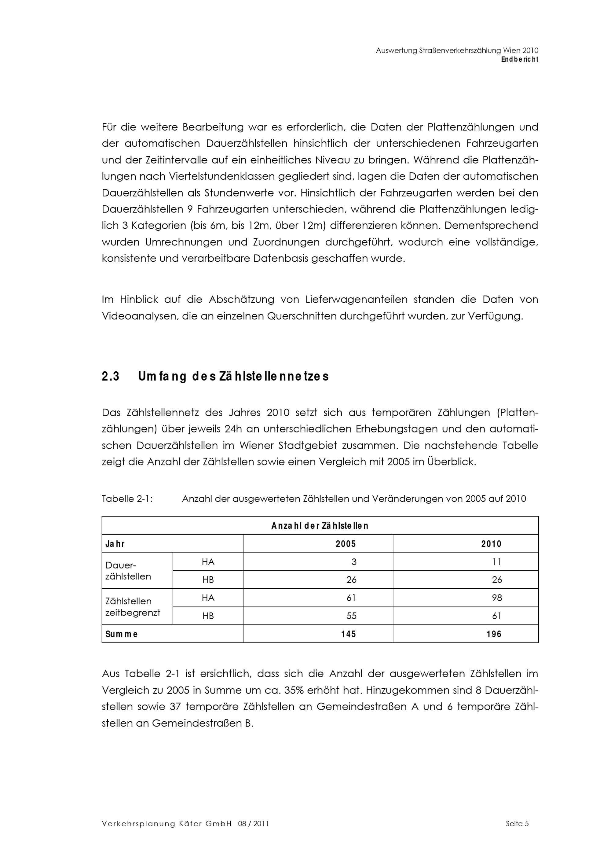 Straßenverkehrszählung Wien 2010 Auswertung Gemeindestraßen A+B : Endbericht / Auftraggeber: Magistrat der Stadt Wien Magistratsabteilung 18 ; Auftragnehmer: Verkehrsplanung Käfer GmbH ; Bearbeitungsteam: Andreas Käfer, Bernhard Fürst, Emmanuel Pediaditis, Kathrin Gabert