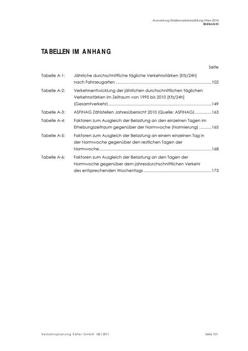 Straßenverkehrszählung Wien 2010 Auswertung Gemeindestraßen A+B : Endbericht / Auftraggeber: Magistrat der Stadt Wien Magistratsabteilung 18 ; Auftragnehmer: Verkehrsplanung Käfer GmbH ; Bearbeitungsteam: Andreas Käfer, Bernhard Fürst, Emmanuel Pediaditis, Kathrin Gabert