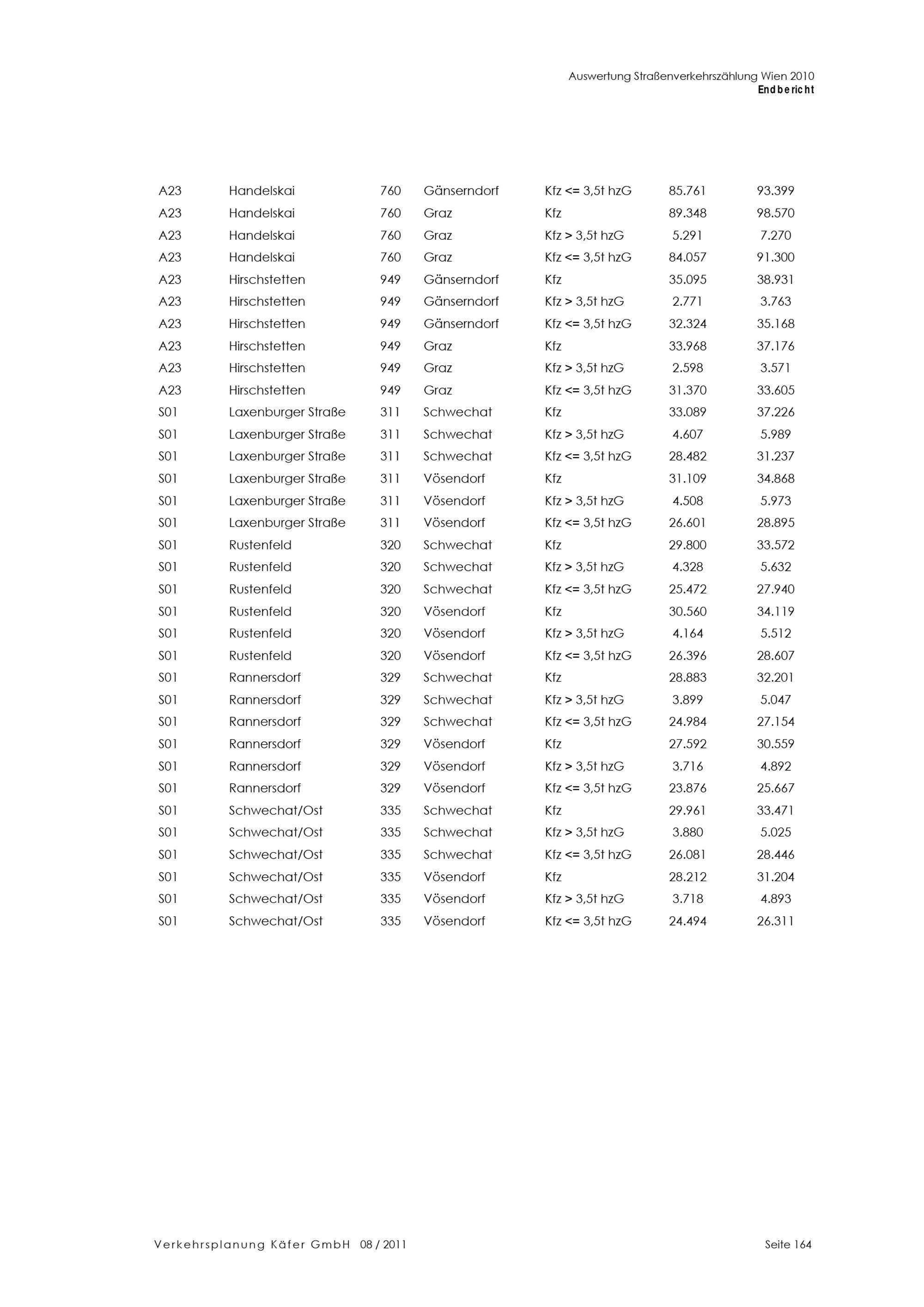 Straßenverkehrszählung Wien 2010 Auswertung Gemeindestraßen A+B : Endbericht / Auftraggeber: Magistrat der Stadt Wien Magistratsabteilung 18 ; Auftragnehmer: Verkehrsplanung Käfer GmbH ; Bearbeitungsteam: Andreas Käfer, Bernhard Fürst, Emmanuel Pediaditis, Kathrin Gabert