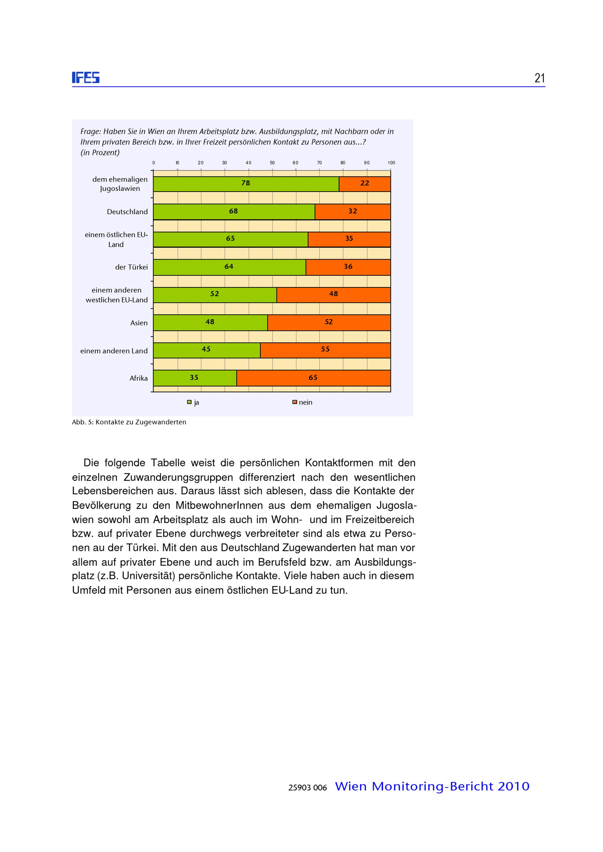 Zusammenleben von verschiedenen Bevölkerungsgruppen in Wien : Monitoringstudie 2010 ; Studienbericht / diese Studie wurde erstellt für die: Magistratsabteilung 18 - Stadtentwicklung und Stadtplanung, Magistratsabteilung 17 - Integration und Diversität ; IFES - Institut für empirische Sozialforschung GmbH