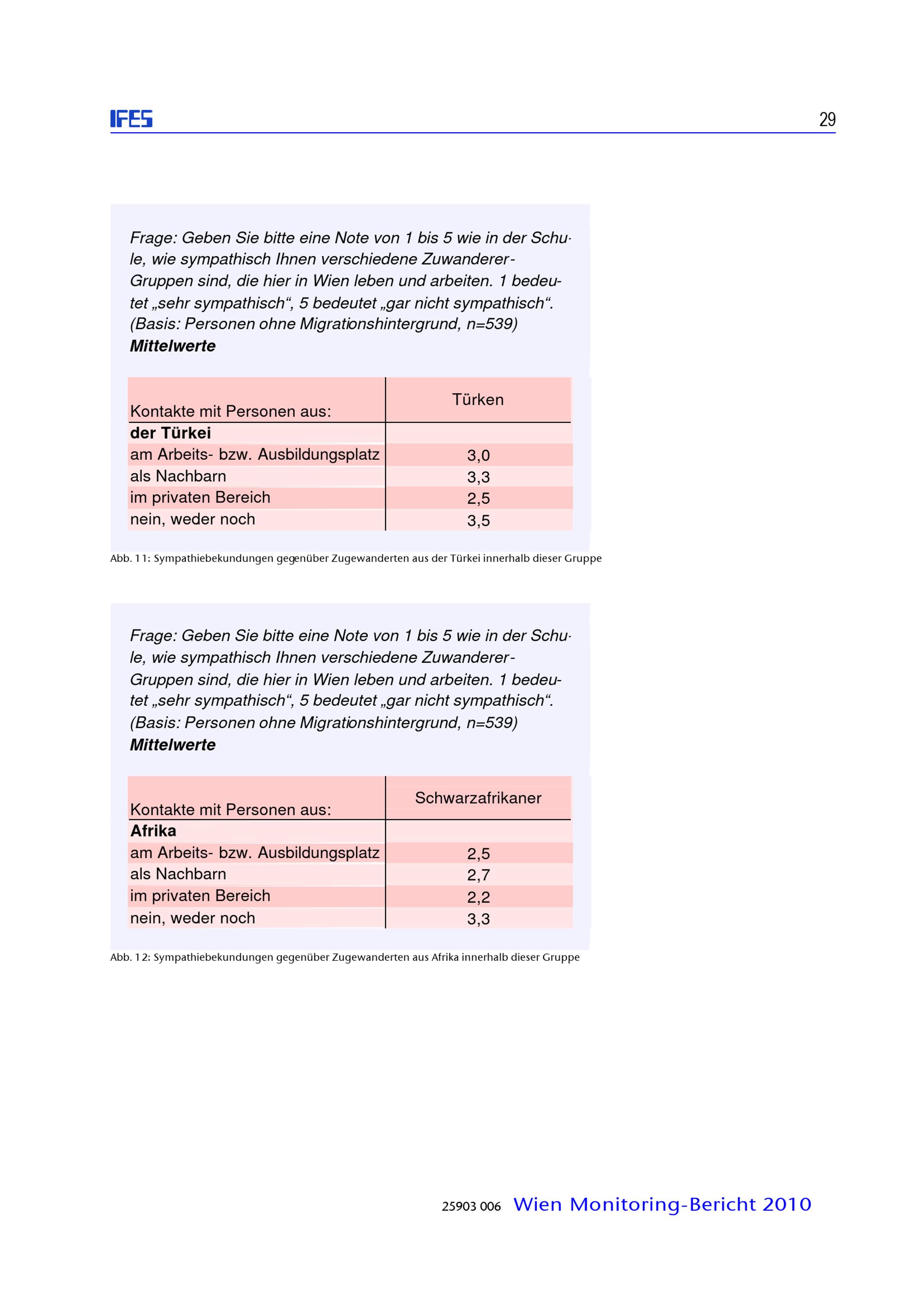 Zusammenleben von verschiedenen Bevölkerungsgruppen in Wien : Monitoringstudie 2010 ; Studienbericht / diese Studie wurde erstellt für die: Magistratsabteilung 18 - Stadtentwicklung und Stadtplanung, Magistratsabteilung 17 - Integration und Diversität ; IFES - Institut für empirische Sozialforschung GmbH