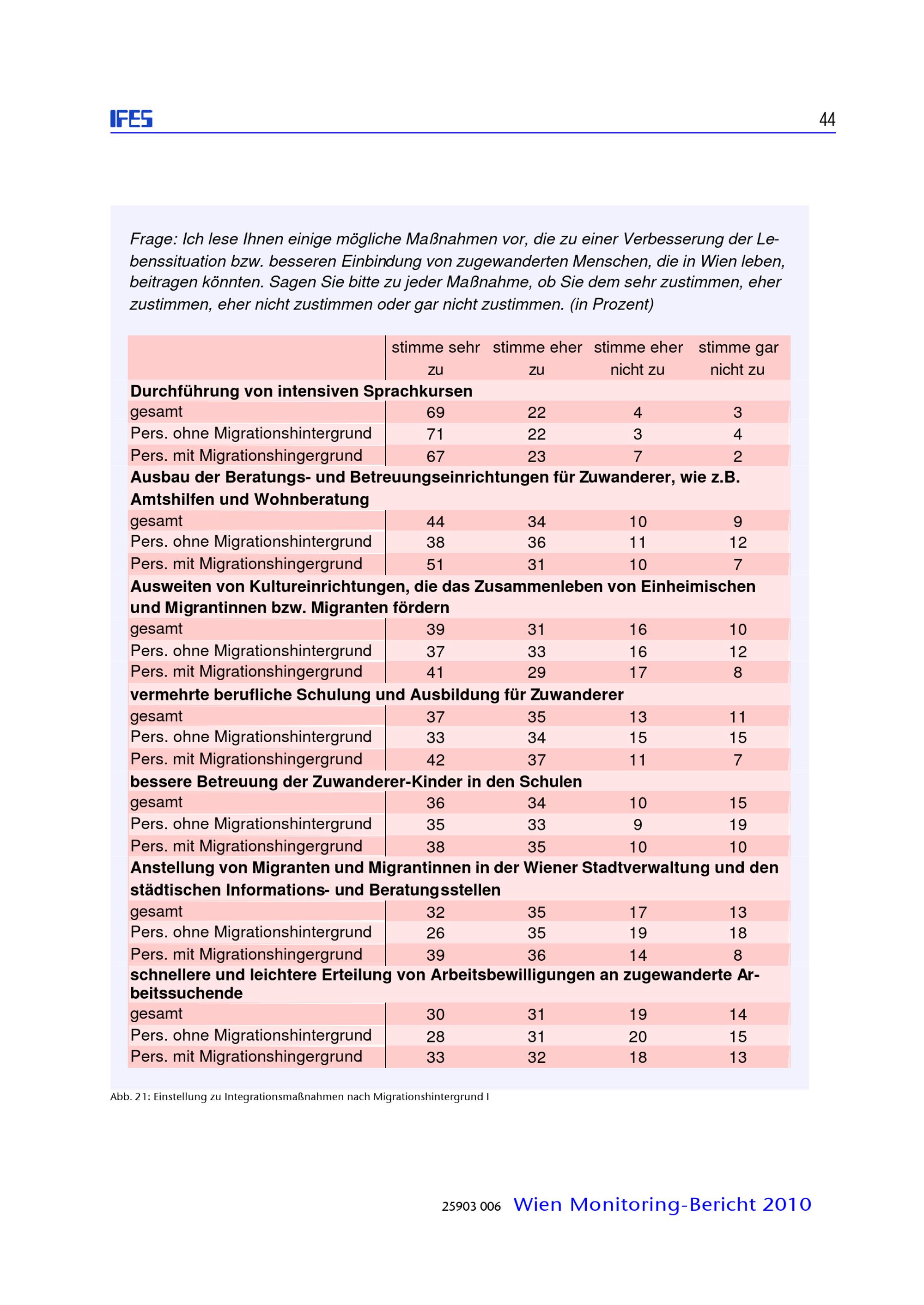 Zusammenleben von verschiedenen Bevölkerungsgruppen in Wien : Monitoringstudie 2010 ; Studienbericht / diese Studie wurde erstellt für die: Magistratsabteilung 18 - Stadtentwicklung und Stadtplanung, Magistratsabteilung 17 - Integration und Diversität ; IFES - Institut für empirische Sozialforschung GmbH