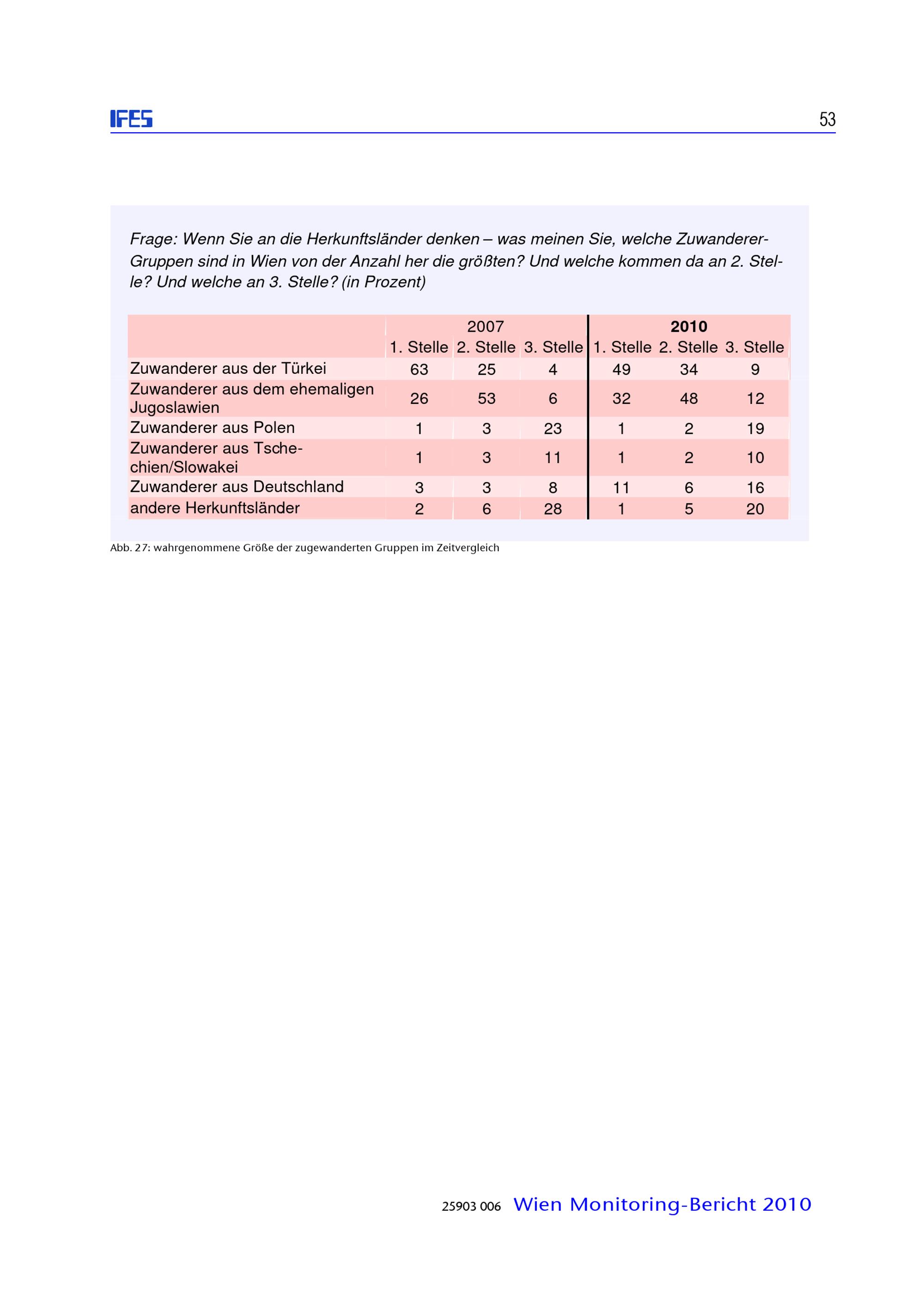 Zusammenleben von verschiedenen Bevölkerungsgruppen in Wien : Monitoringstudie 2010 ; Studienbericht / diese Studie wurde erstellt für die: Magistratsabteilung 18 - Stadtentwicklung und Stadtplanung, Magistratsabteilung 17 - Integration und Diversität ; IFES - Institut für empirische Sozialforschung GmbH