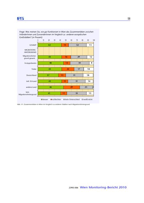 Zusammenleben von verschiedenen Bevölkerungsgruppen in Wien : Monitoringstudie 2010 ; Studienbericht / diese Studie wurde erstellt für die: Magistratsabteilung 18 - Stadtentwicklung und Stadtplanung, Magistratsabteilung 17 - Integration und Diversität ; IFES - Institut für empirische Sozialforschung GmbH