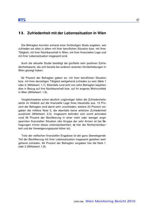 Zusammenleben von verschiedenen Bevölkerungsgruppen in Wien : Monitoringstudie 2010 ; Studienbericht / diese Studie wurde erstellt für die: Magistratsabteilung 18 - Stadtentwicklung und Stadtplanung, Magistratsabteilung 17 - Integration und Diversität ; IFES - Institut für empirische Sozialforschung GmbH
