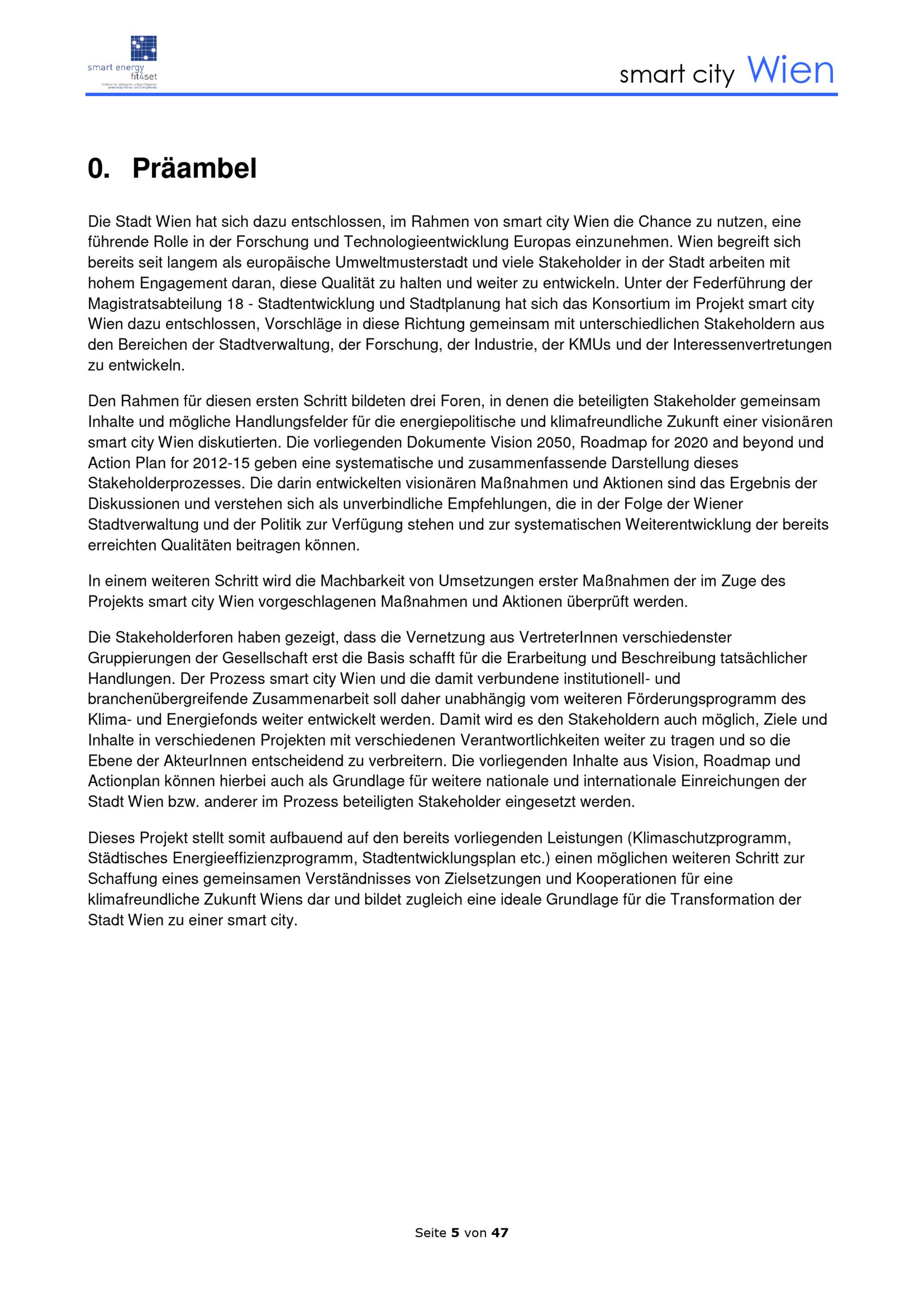 smart city Wien : Vision 2050 Roadmap for 2020 and beyond Action Plan for 2012-15 / City of Vienna Municipal Department 18 - Urban Development and Planning ; Municipal Department 20 - Energy Planning